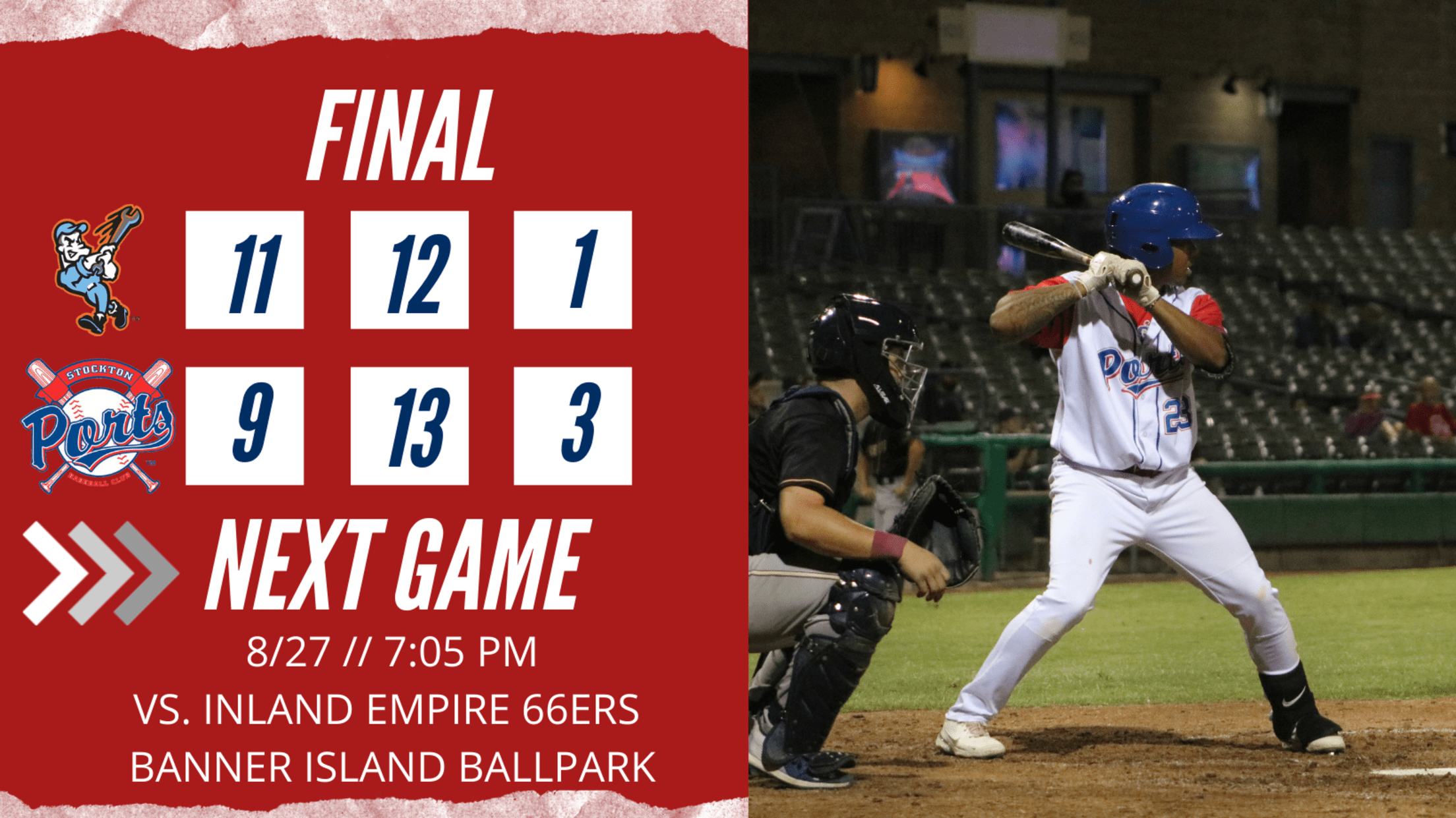 STOCKTON, Ca.- The Inland Empire 66ers scored three runs on three straight two-out hits in the top of the 11th as the Ports fell in 11-9 in 11 innings in a back-and-forth contest on Thursday night at Banner Island Ballpark.