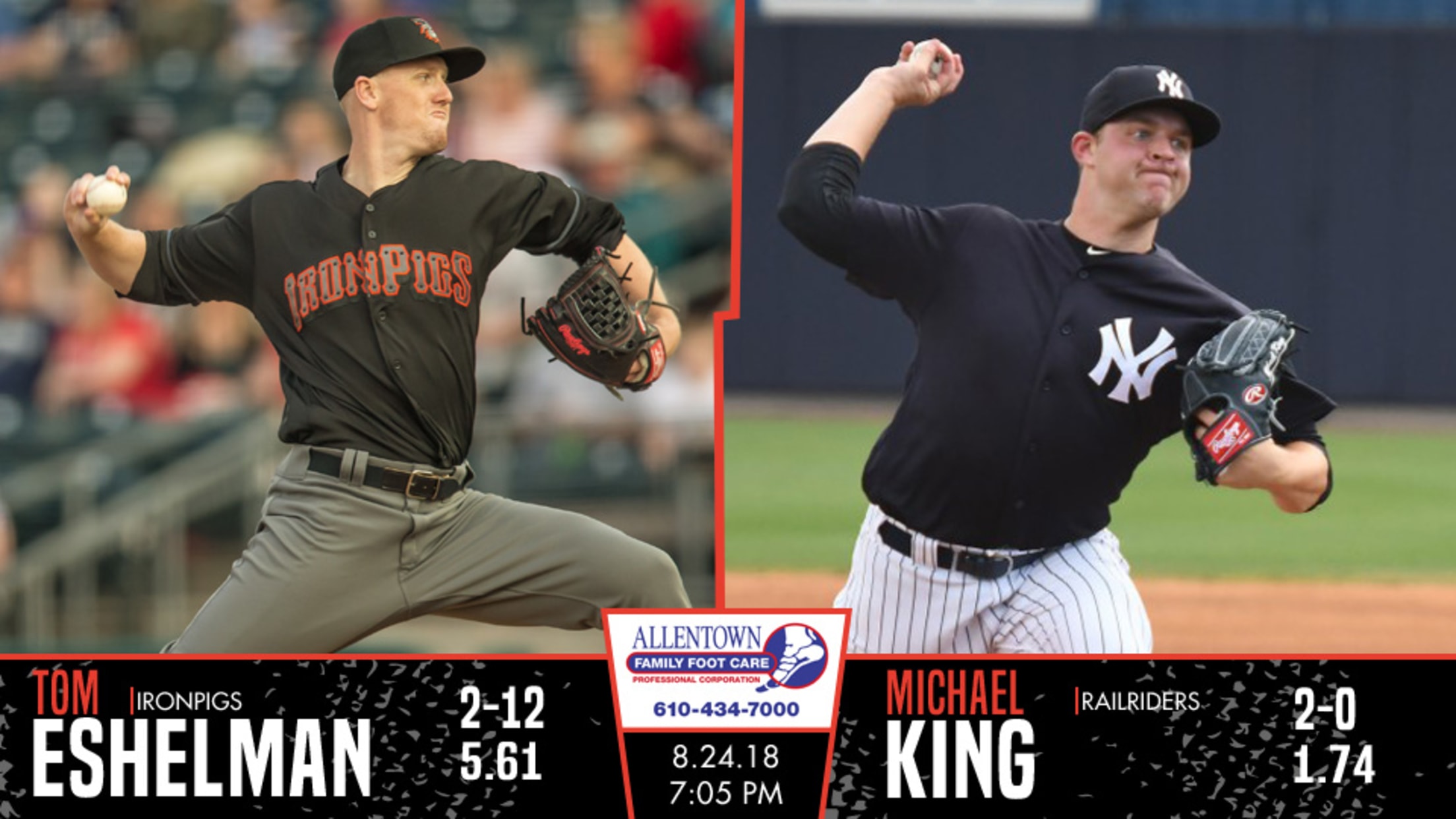 Eshelman takes the hill looking for his third win of the year. In his last 12 starts, Eshelman has posted an ERA of 3.75 and has allowed two runs or less seven times. King is making his first career start against the IronPigs. King, a former seventh round pick of the Marlins out of Boston College, was acquired in a trade by the Yankees for