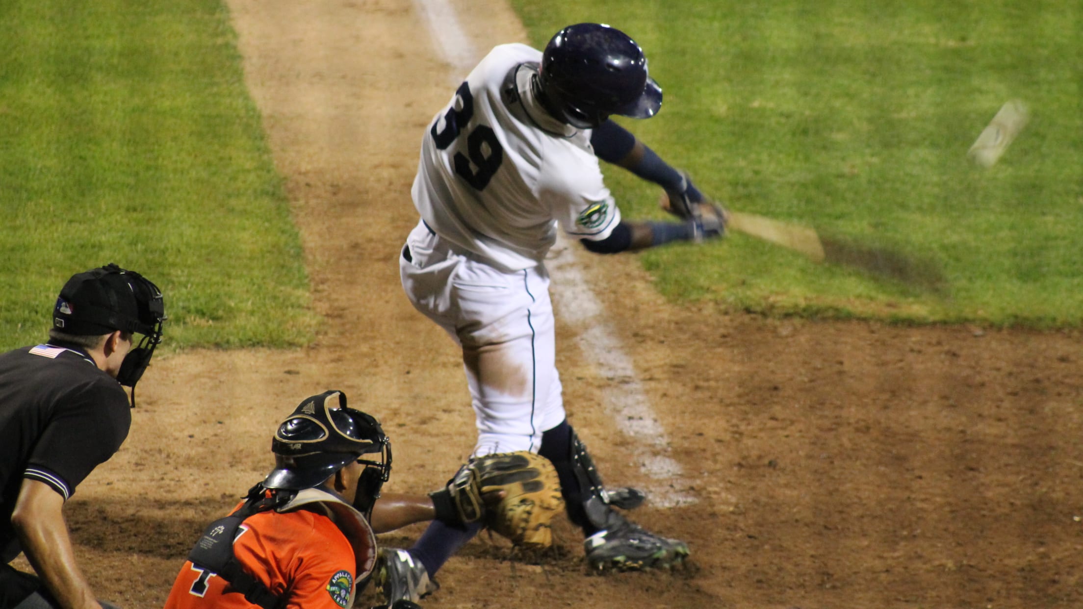 Rays centerfielder Emilio Gustave connects for one of the three hits in his 3-for-5 night on Friday. Gustave fell one double short of hitting for the cycle.