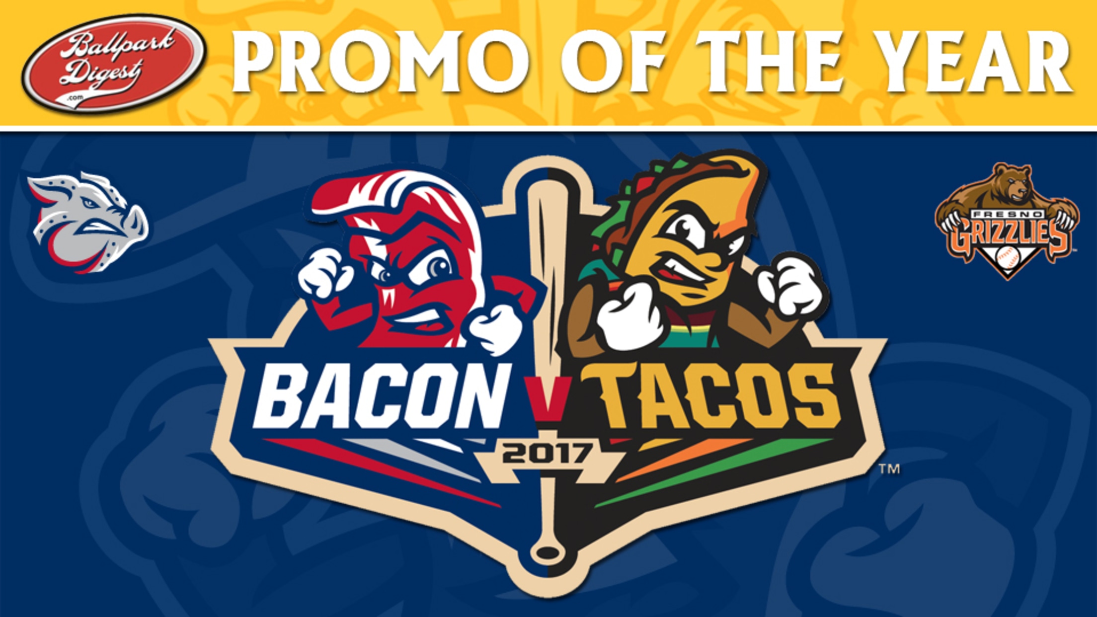 Ballpark Digest has named the "Bacon vs. Tacos" competition, featuring Minor League Baseball's Lehigh Valley IronPigs and Fresno Grizzlies, as its 2017 Promotion of the Year.This marks the first time that teams have combined forces on a promotion worthy of the prestigious industry honor.