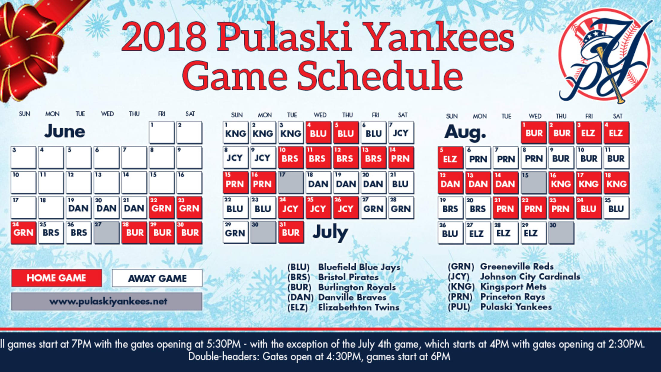 The Pulaski Yankees front office staff is pleased to announce the 2018 baseball schedule.