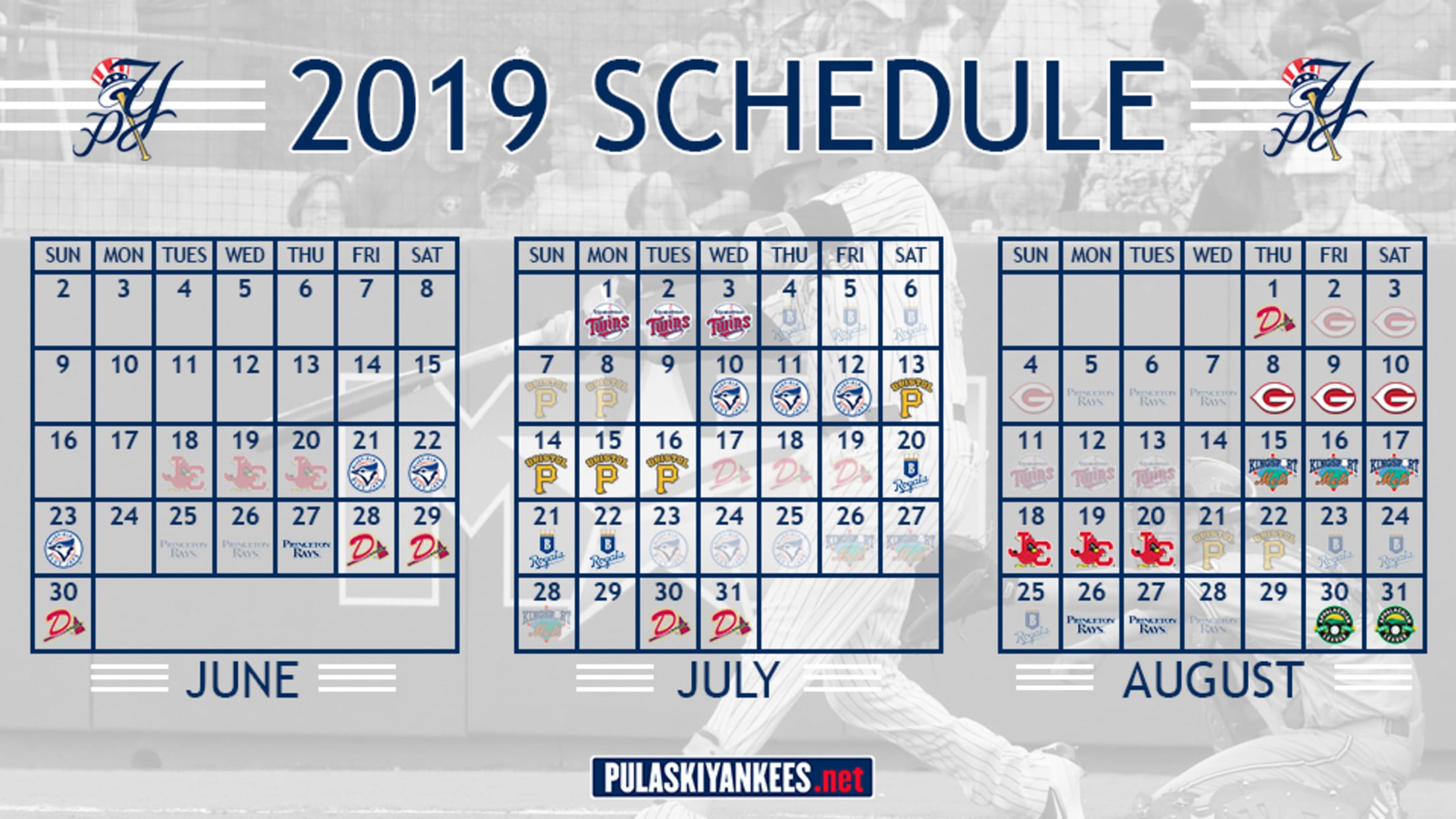 2019 Pulaski Yankees Schedule