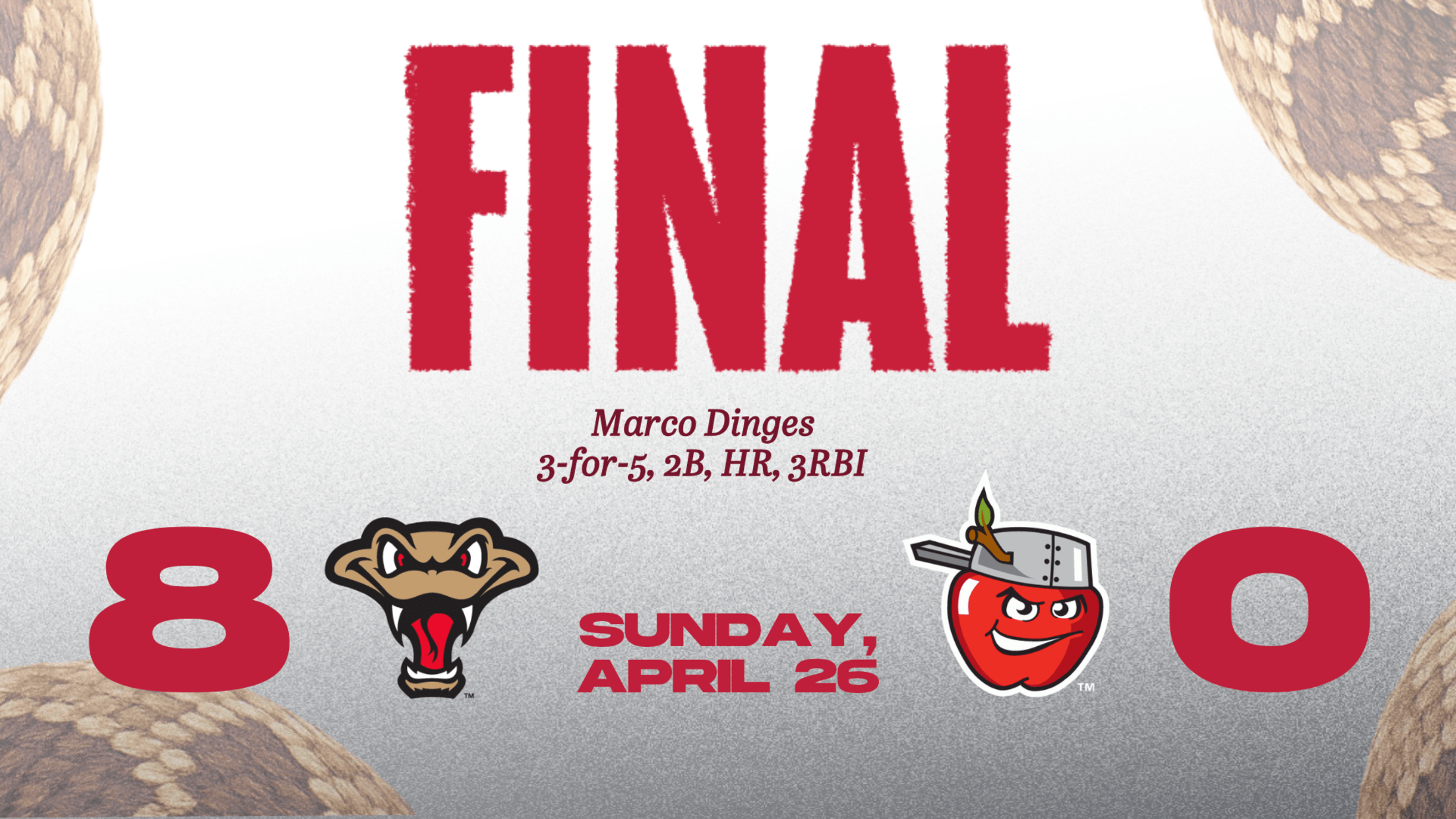 Payne and Dinges hit back-to-back home runs in the seventh inning for a 7-0 lead. It was the second time in the series for the duo to hit back-to-back homers. As a team, Wisconsin mashed eleven homers in the six-game series with the TinCaps to run their season total to 26.
