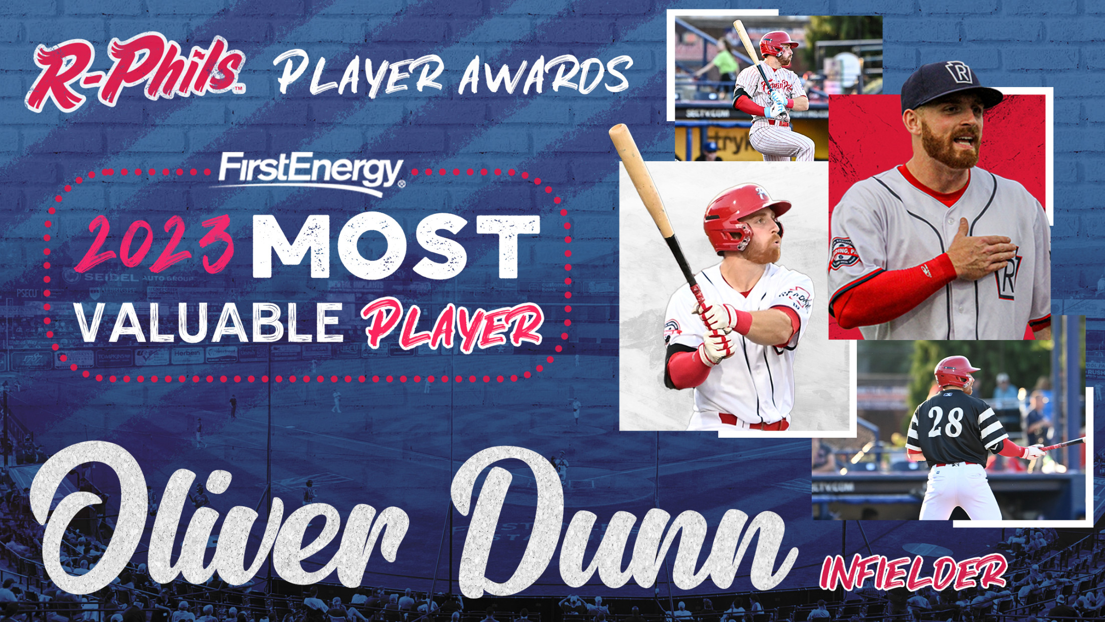 Oliver Dunn turned in a stellar 2023 campaign in his first year in the Phillies organization. Dunn is hitting .277, with 21 home runs and 78 RBI. He also added 26 doubles and scored 64 runs over 113 games. Dunn leads the R-Phils in a multitude of offensive categories and ranks within the top-10 in the Eastern League in many as well. Dunn achieved many career highs in 2023, including games played, runs, hits, homers, RBI, walks and many more. Congratulations to Oliver Dunn on winning the 2023 FirstEnergy R-Phils MVP Award.