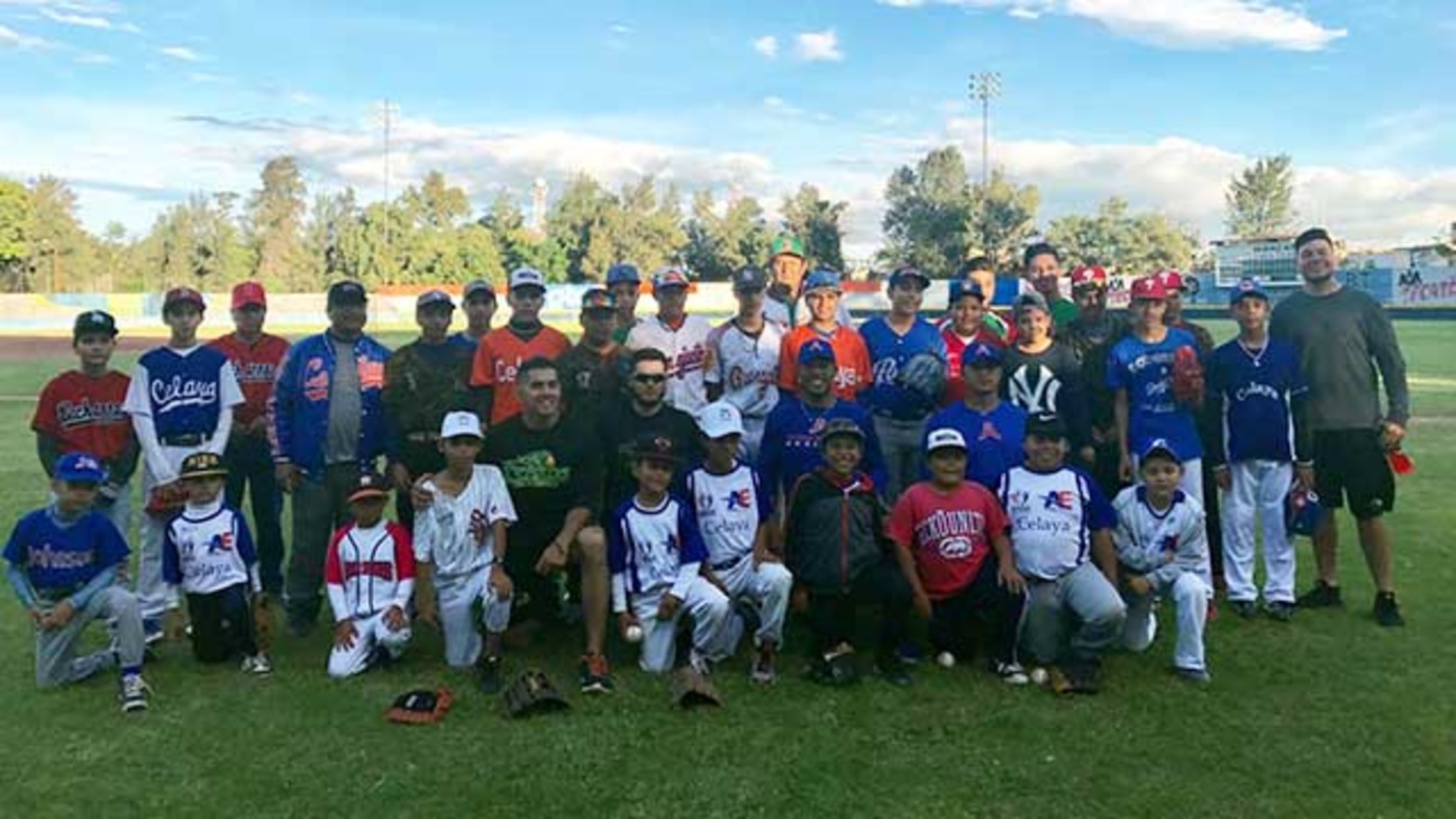 Niños y jóvenes pertenecientes a la "Liga Infantil y Juvenil Municipal de Celaya", hicieron acto de presencia en las instalaciones del Estadio "Ciro Soto Lara" de esta ciudad, donde convivieron y aprendieron de peloteros profesionales, pertenecientes al equipo de Cajeteros.