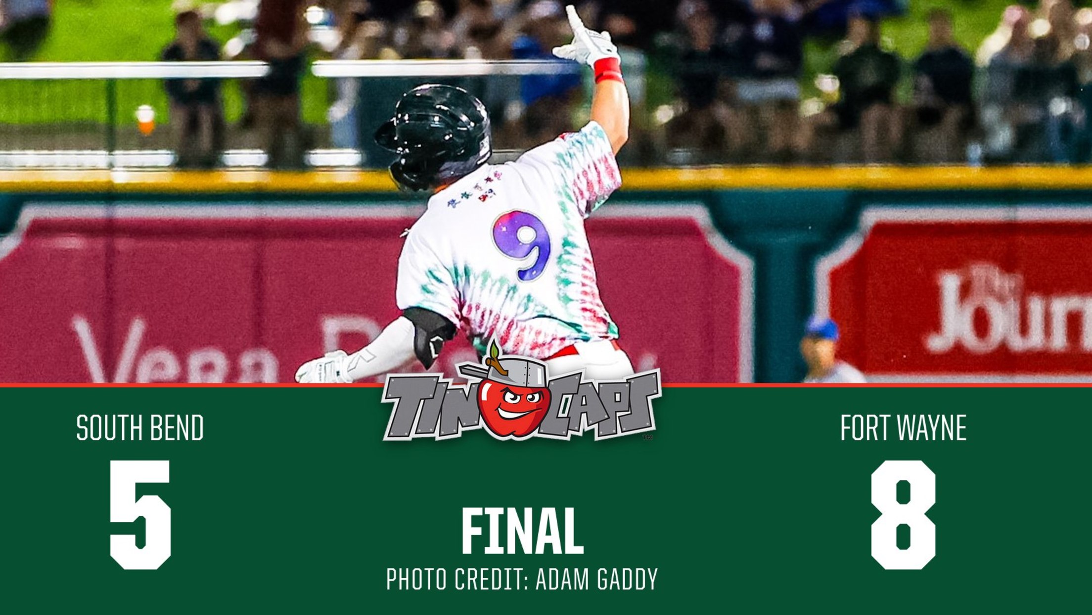 FORT WAYNE, Ind. -- The TinCaps broke a tie score with three runs in the bottom of the eighth inning on their way to a dramatic 8-5 win over the South Bend Cubs at Parkview Field on Thursday night in front of 6,725 fans. With nine games remaining in the regular season, Fort Wayne trails the West Michigan Whitecaps (Detroit Tigers affiliate) by 1 ½ games in the Midwest League East Division postseason race.