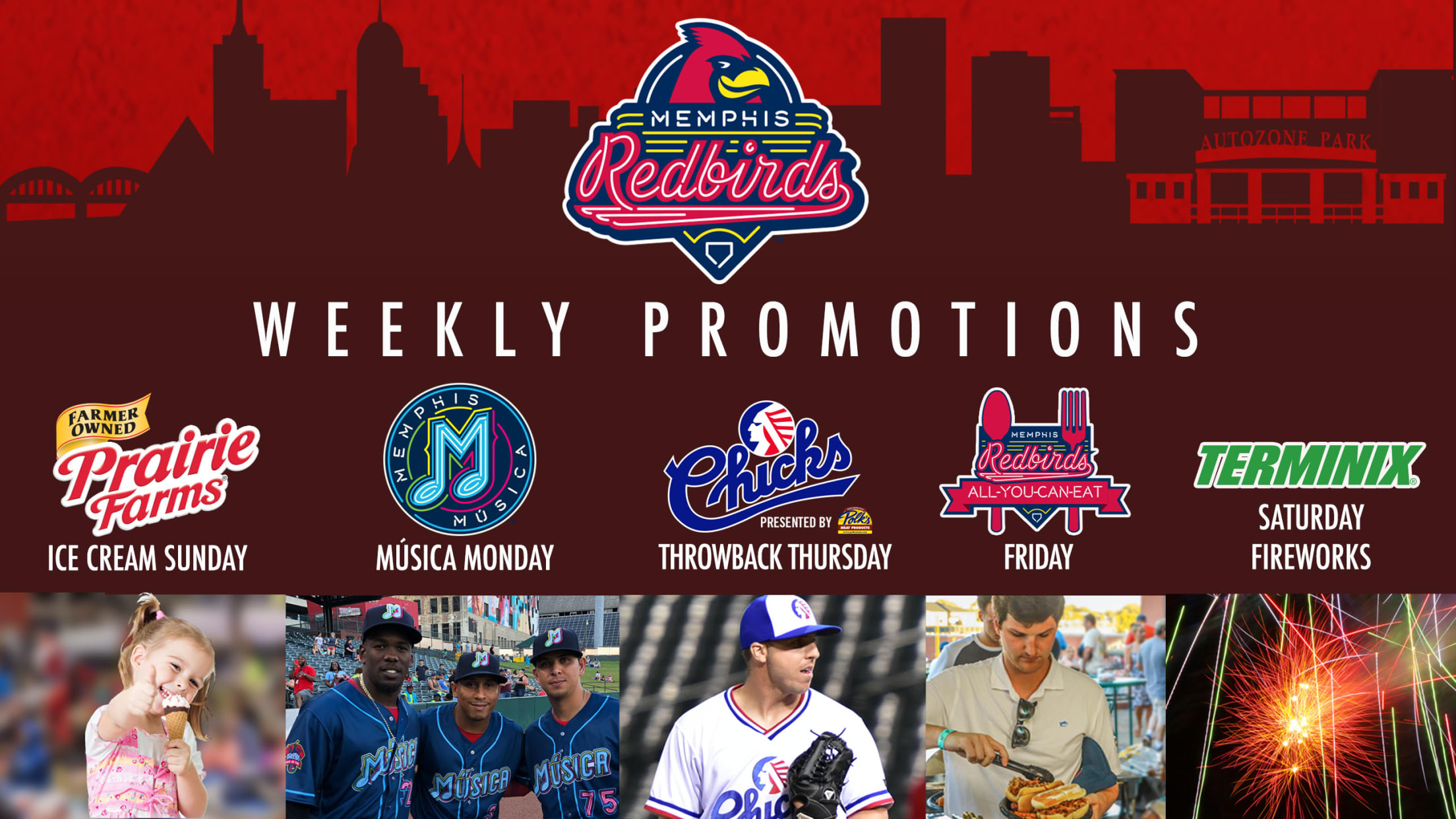 MEMPHIS, Tennessee - The two-time defending Pacific Coast League champion and 2018 Triple-A National Champion Memphis Redbirds have announced a weekly promotional schedule for the upcoming 2019 season, with single-game tickets for the season on sale now.