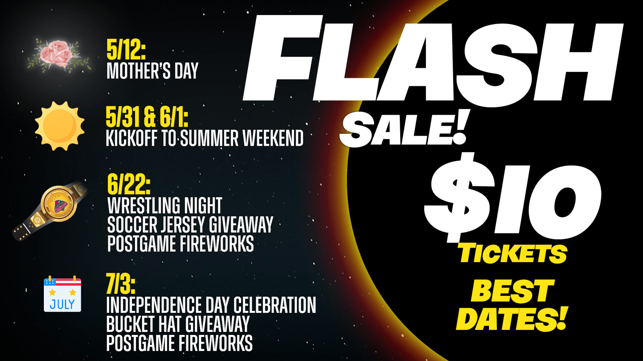 The Redbirds made five special days available for $10 during the eclipse sale, including Mother’s Day, Summer Kickoff Weekend, Independance Day Celebration and three fireworks shows. Tickets for signature giveaways (Redbirds beach towel, Redbirds soccer jersey and Redbirds bucket hat) are also available under the flash sale.