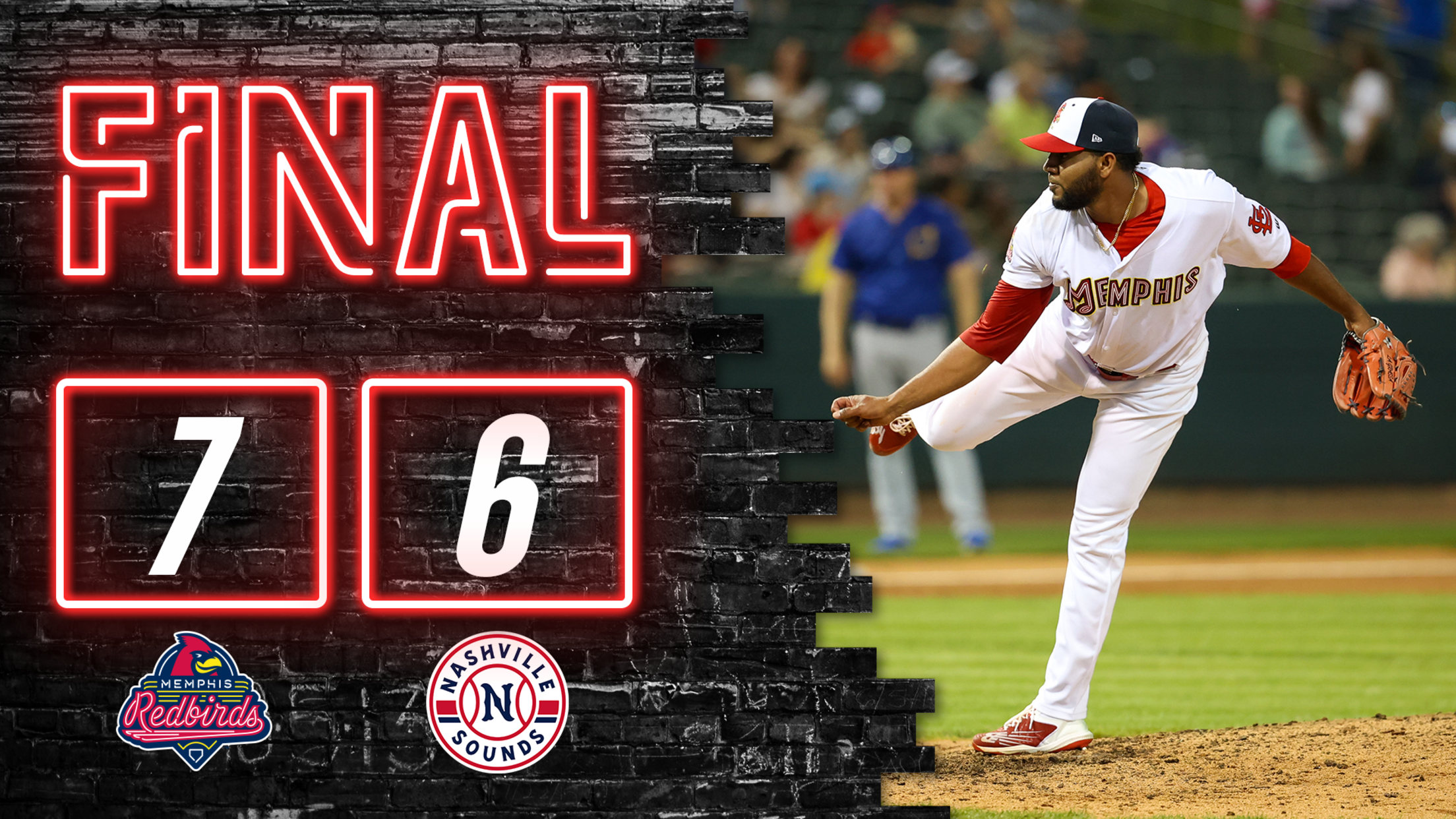 MEMPHIS, TN – The Memphis Redbirds salvaged game three of a six-game series against the Nashville Sounds on Thursday night at AutoZone Park by a final score of 7-6.