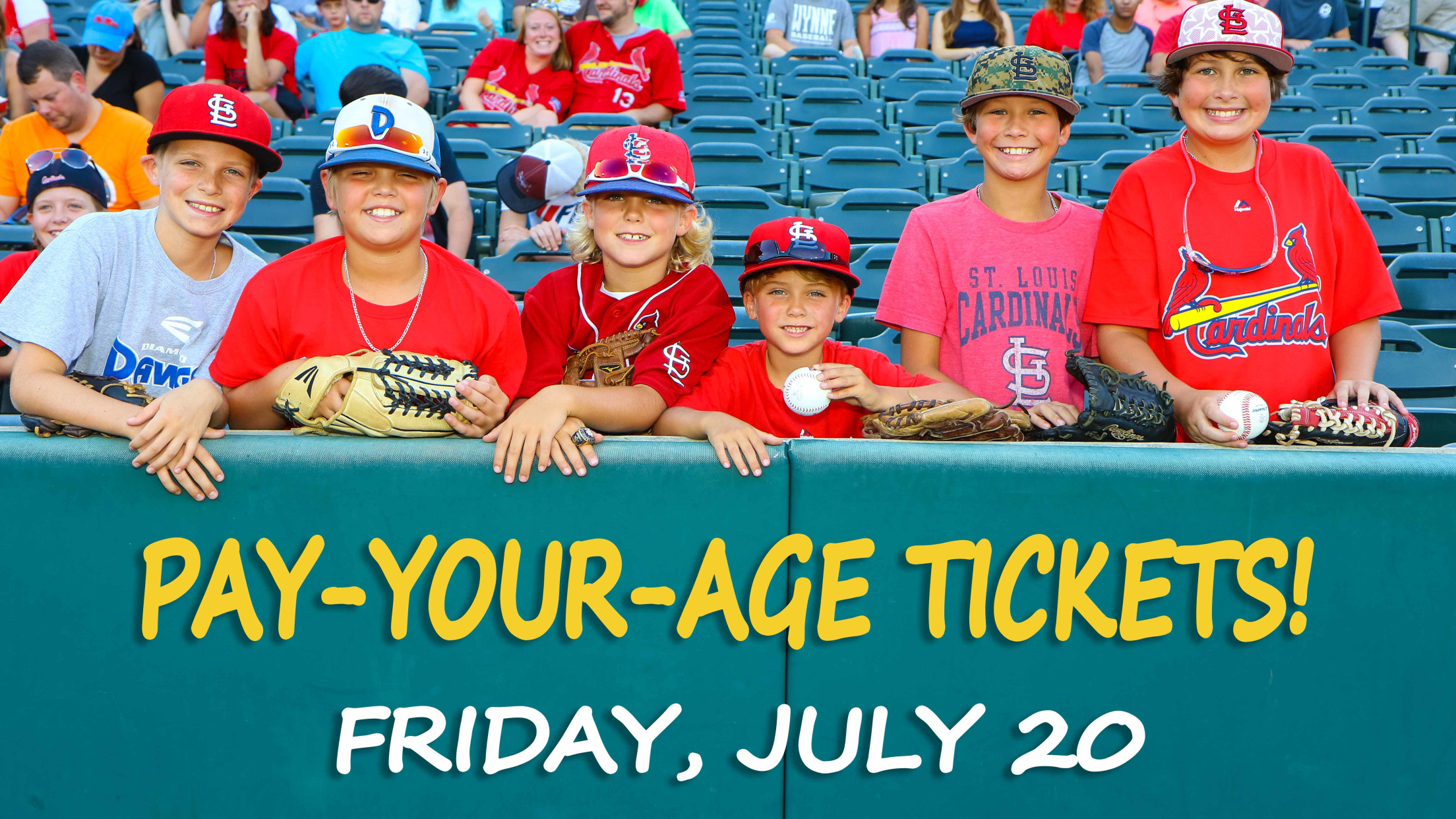 The Memphis Redbirds are letting fans pay their age for next Friday's game at AutoZone Park, with Dugout and Field Box tickets starting at $3 for three-year-old fans. Children two and under are free, as usual.