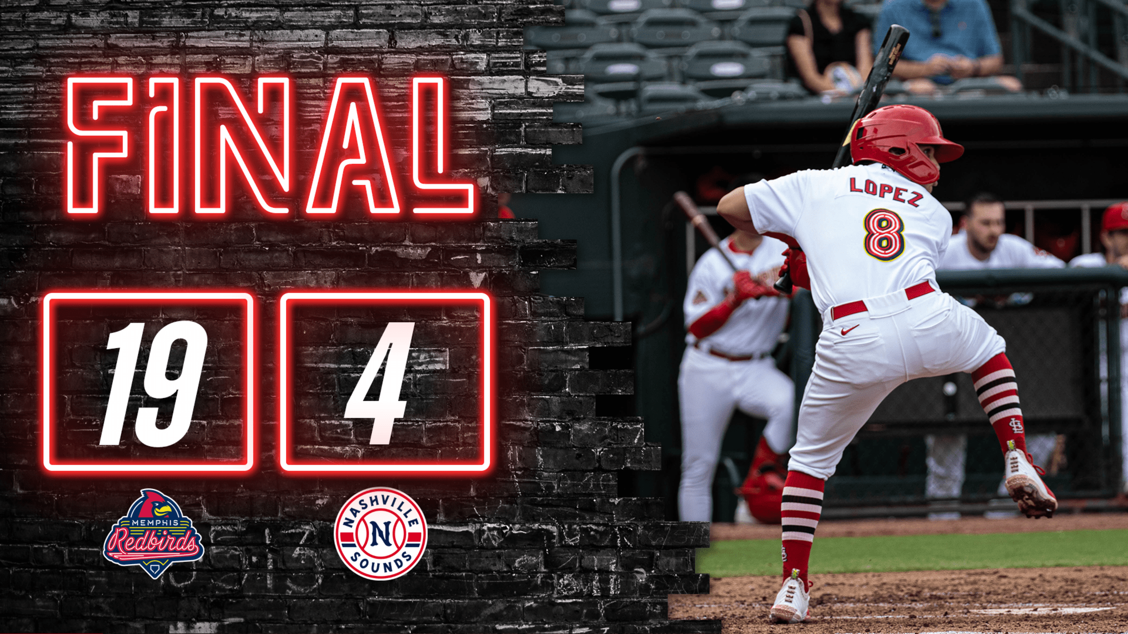 NASHVILLE, TN – An offensive outburst powered the Memphis Redbirds past the Nashville Sounds 19-4 on Thursday night at First Horizon Park. It was the most lopsided victory of the season for Memphis, who scored a season-high 19 runs on 23 hits. The 23 were one base hit shy of a franchise record