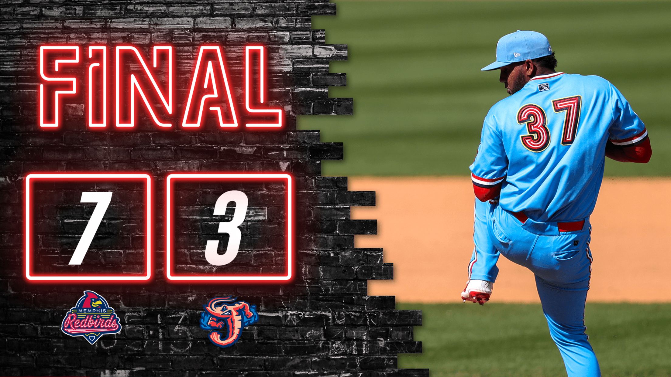 MEMPHIS, TN – The Memphis Redbirds exploded in the seventh inning to take game two of a six-game series with the Jacksonville Jumbo Shrimp at AutoZone Park by the final score of 7-3 on Wednesday afternoon.