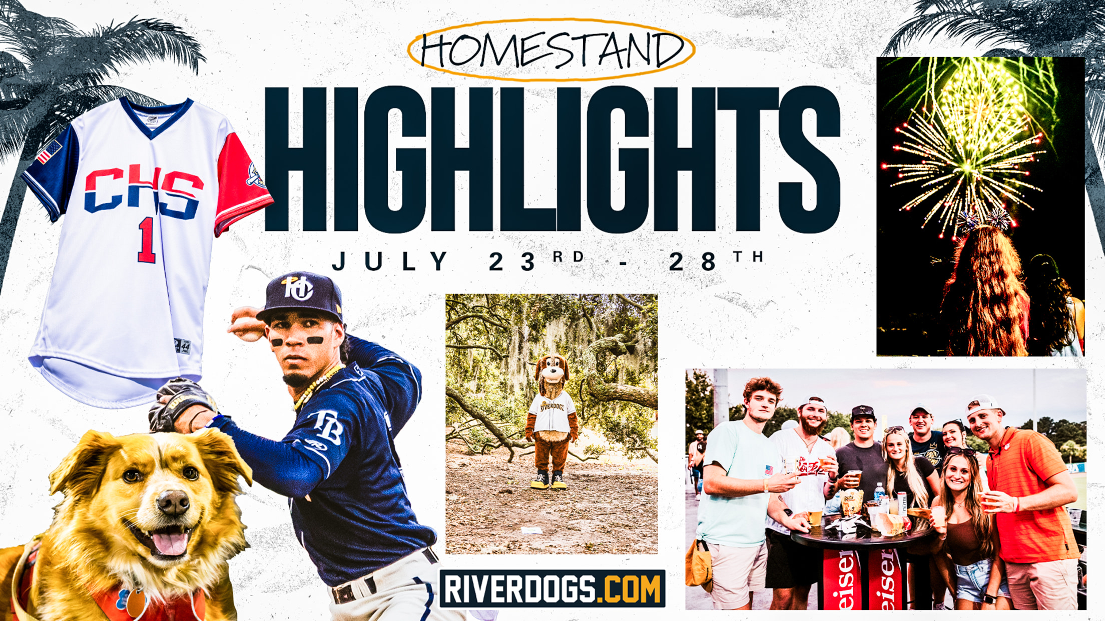 The Charleston RiverDogs have enjoyed a second-half surge once again, taking over possession of first place in the Carolina League South Division. The Kannapolis Cannon Ballers, the division’s first half champion, will come calling for another crucial six-game series July 23-28. The week will include Swampy Joe Night on Wednesday, Thirsty Thursday theme centered around one of the most popular musicians in the world and the RiverDogs Summer Games on Saturday.
