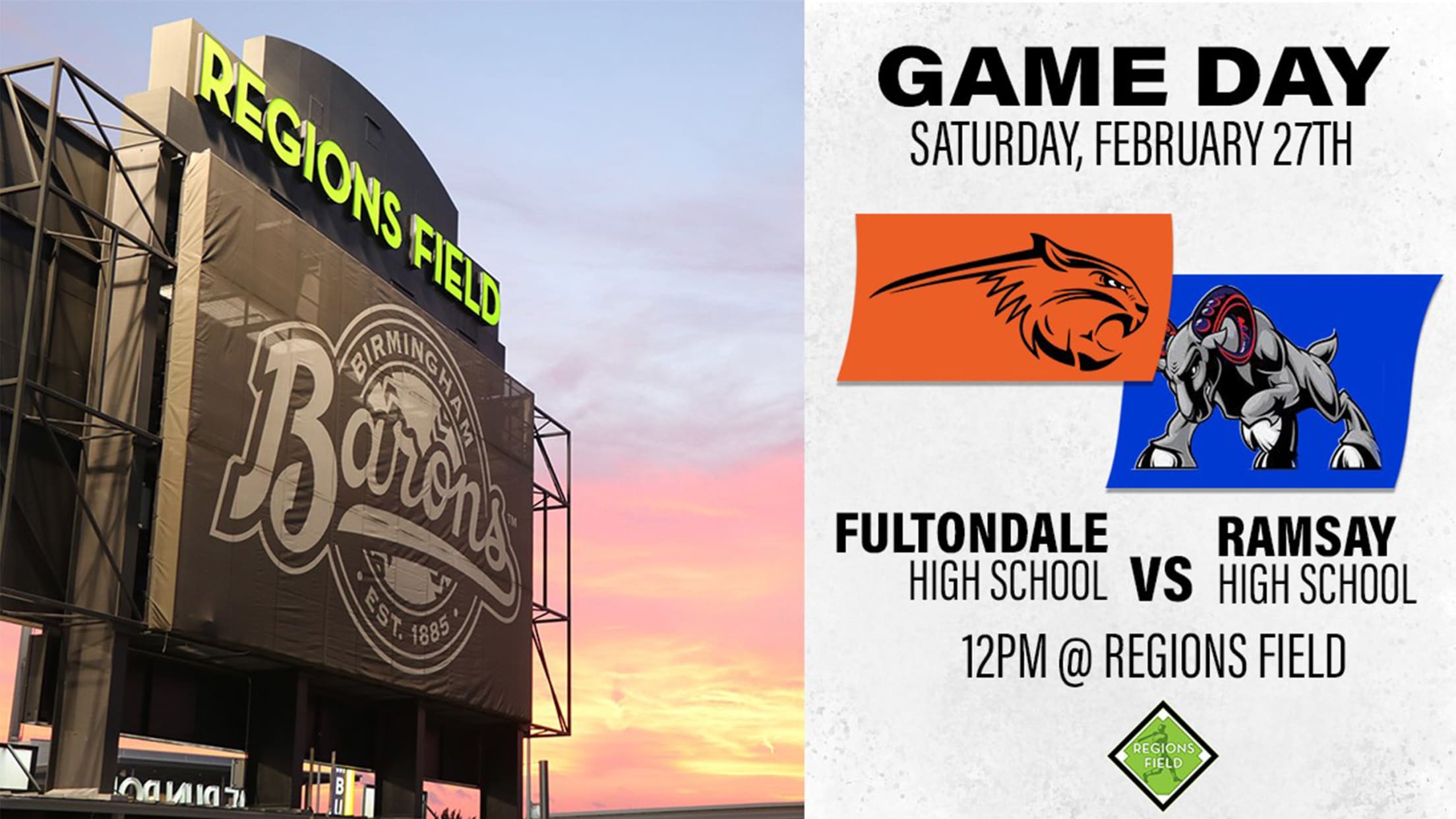 Regions Field is honored to announce that it will host the Fultondale High School Wildcats home opener against the Ramsay High School Rams on Saturday, February 27th. The game will begin at 12:00 p.m. with gates opening at 11:00 a.m.
