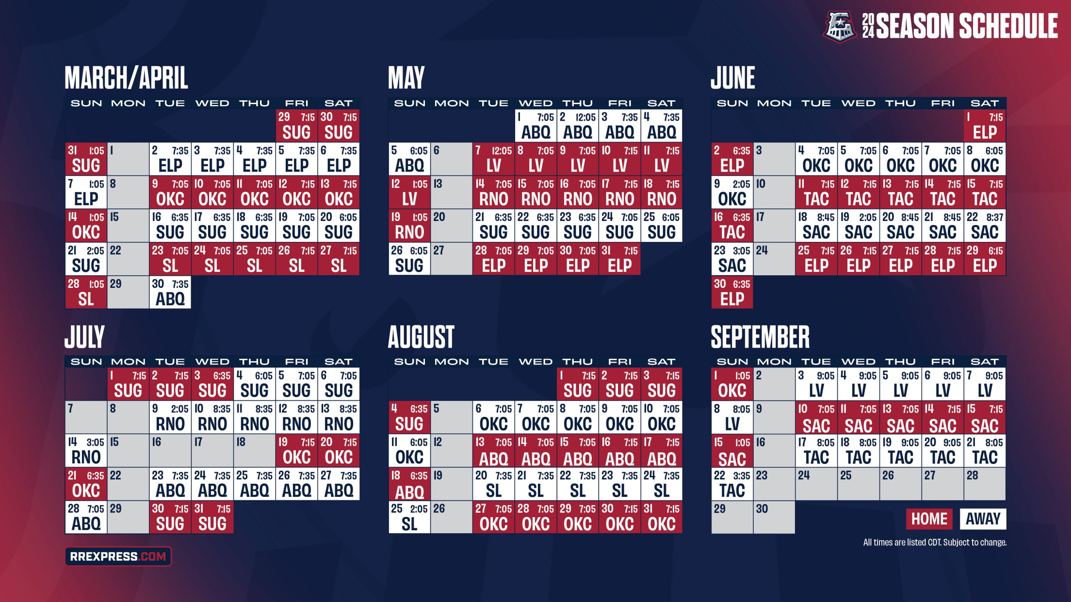 The Express have adjusted home game times for the 2024 season based on responses from a fan feedback survey conducted during the 2023 season. To print Round Rock’s full 2024 schedule, click HERE.