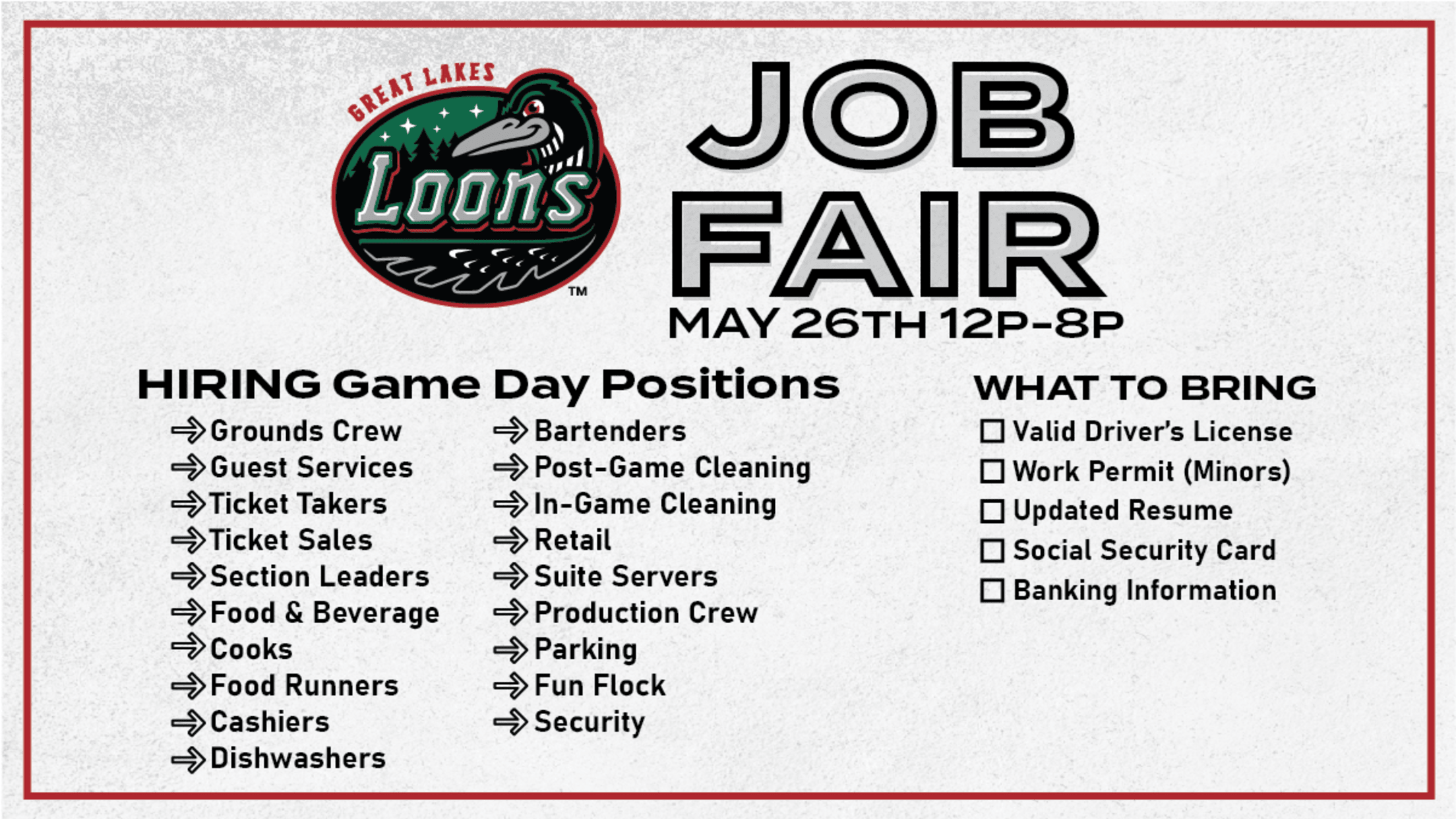 Loons to Host Seasonal Job Fair May 26th