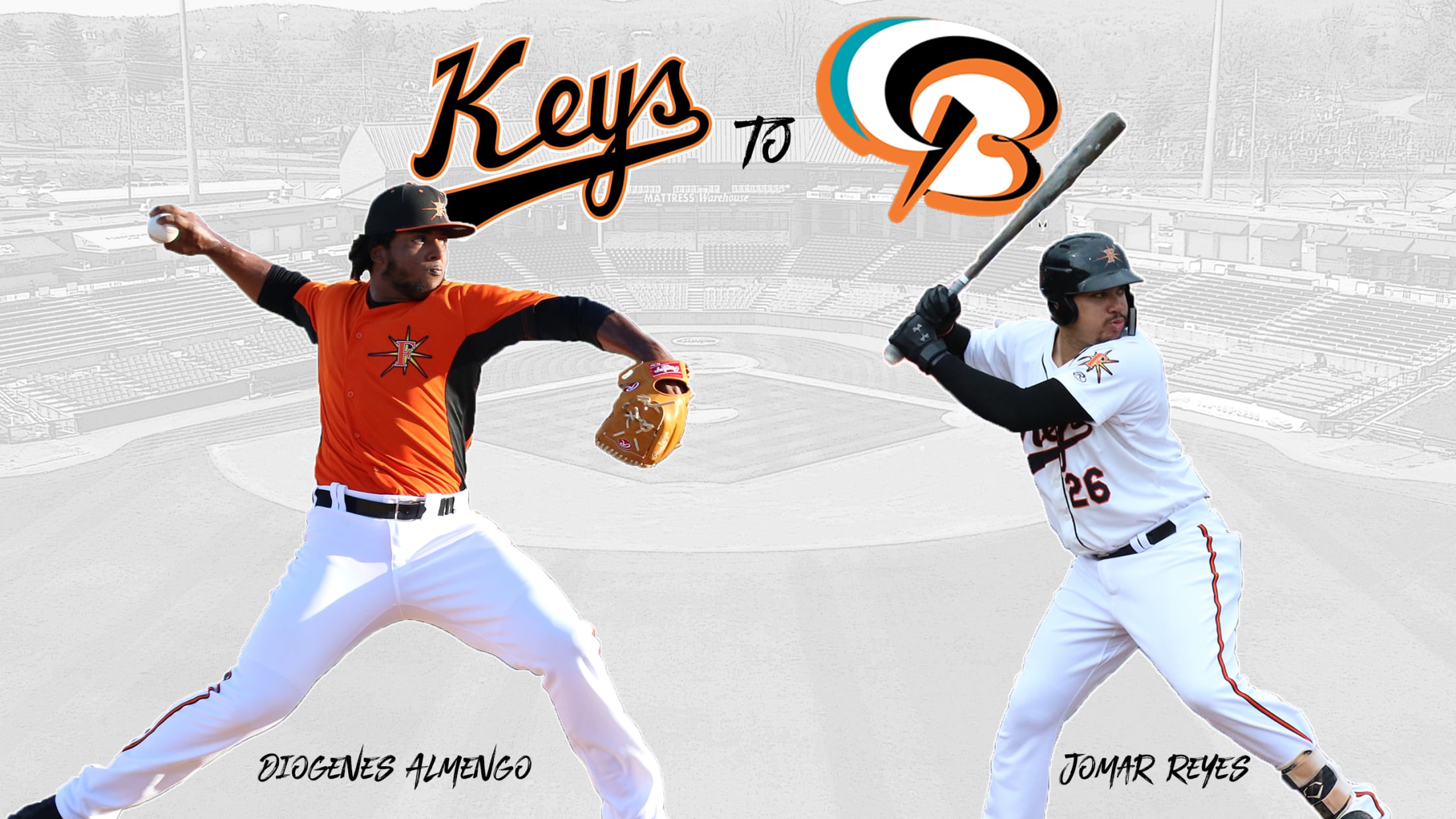 FREDERICK, MD - The Frederick Keys are excited to announce that Jomar Reyes and Diógenes Almengo have been promoted to the Double-A Bowie Baysox. It is the first call-up for both players to the Eastern League, while Reyes and Almengo are the 10th and 11th Keys players this season to