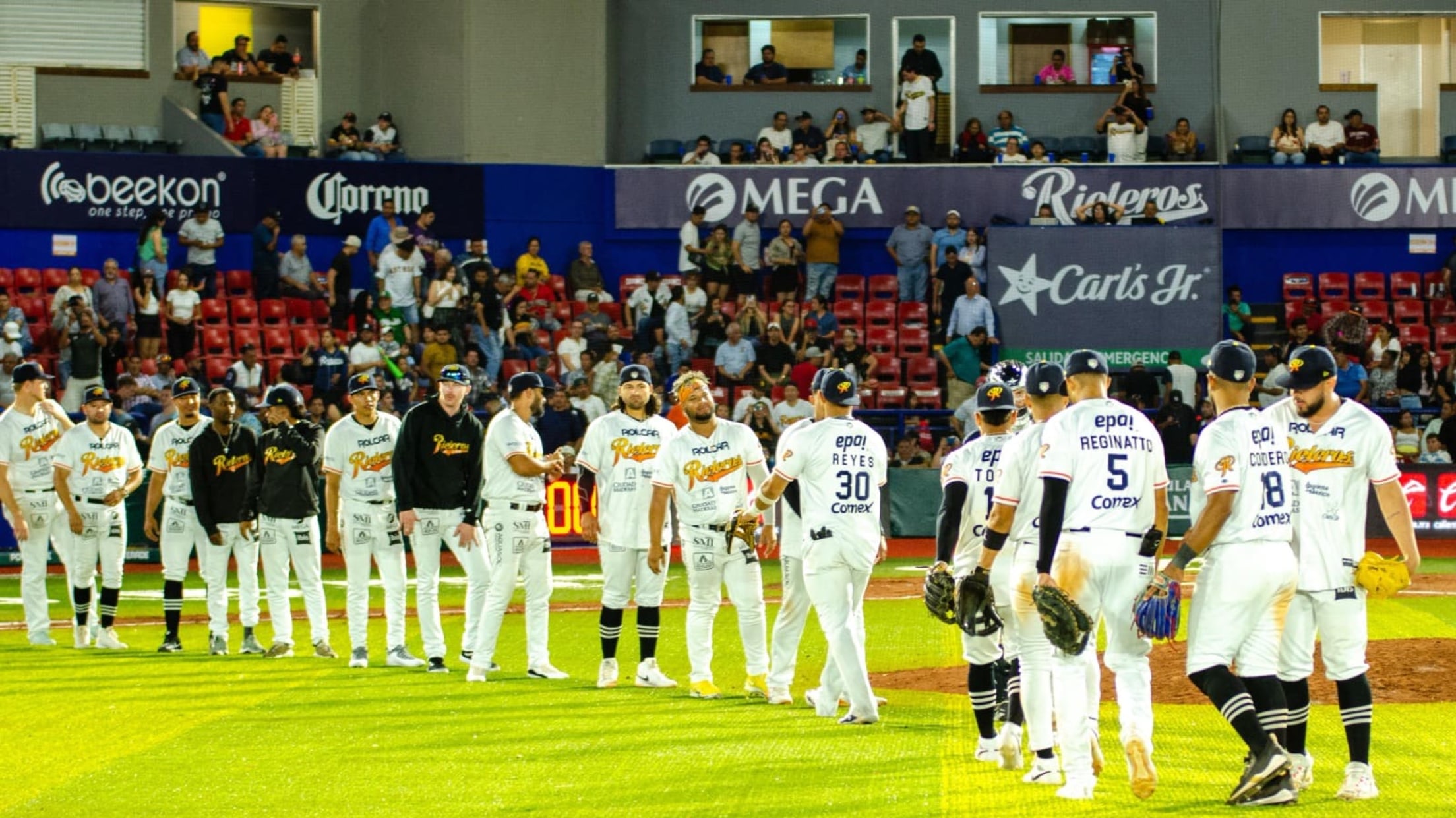 Por los Rieleros inició en el montículo Derek West, quien se alzó con el triunfo contando con efectivos relevos de Dalton Rodríguez, José Luna y cerró Luis Pacheco.
