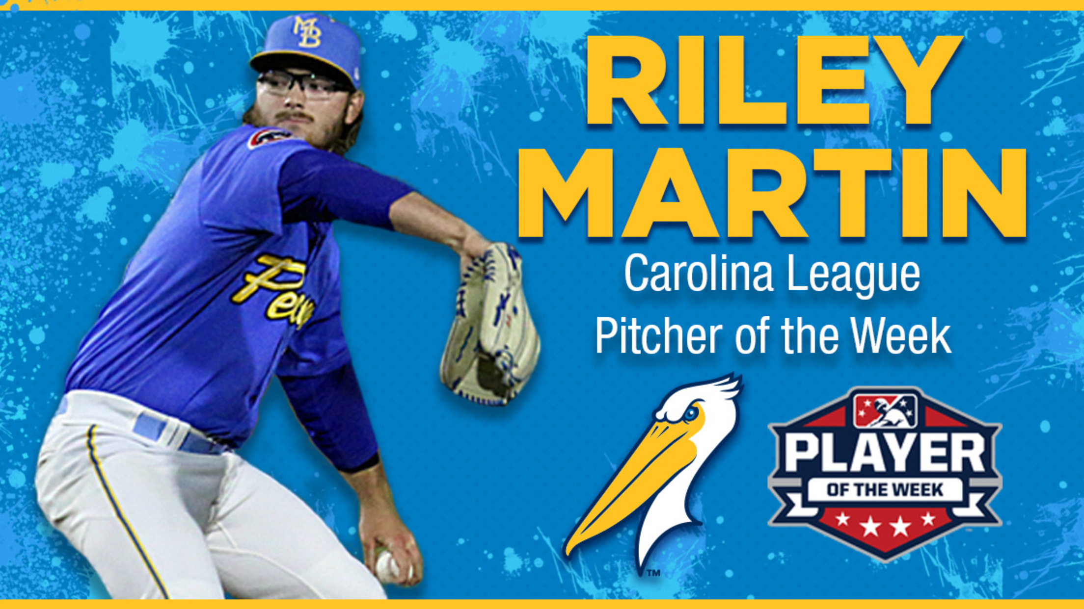 Minor League Baseball named Pelicans relief pitcher Riley Martin the Carolina League Pitcher of the Week on Monday. This is the first Pitcher of the Week award of the season for the Pelicans and the first in Martin’s career.