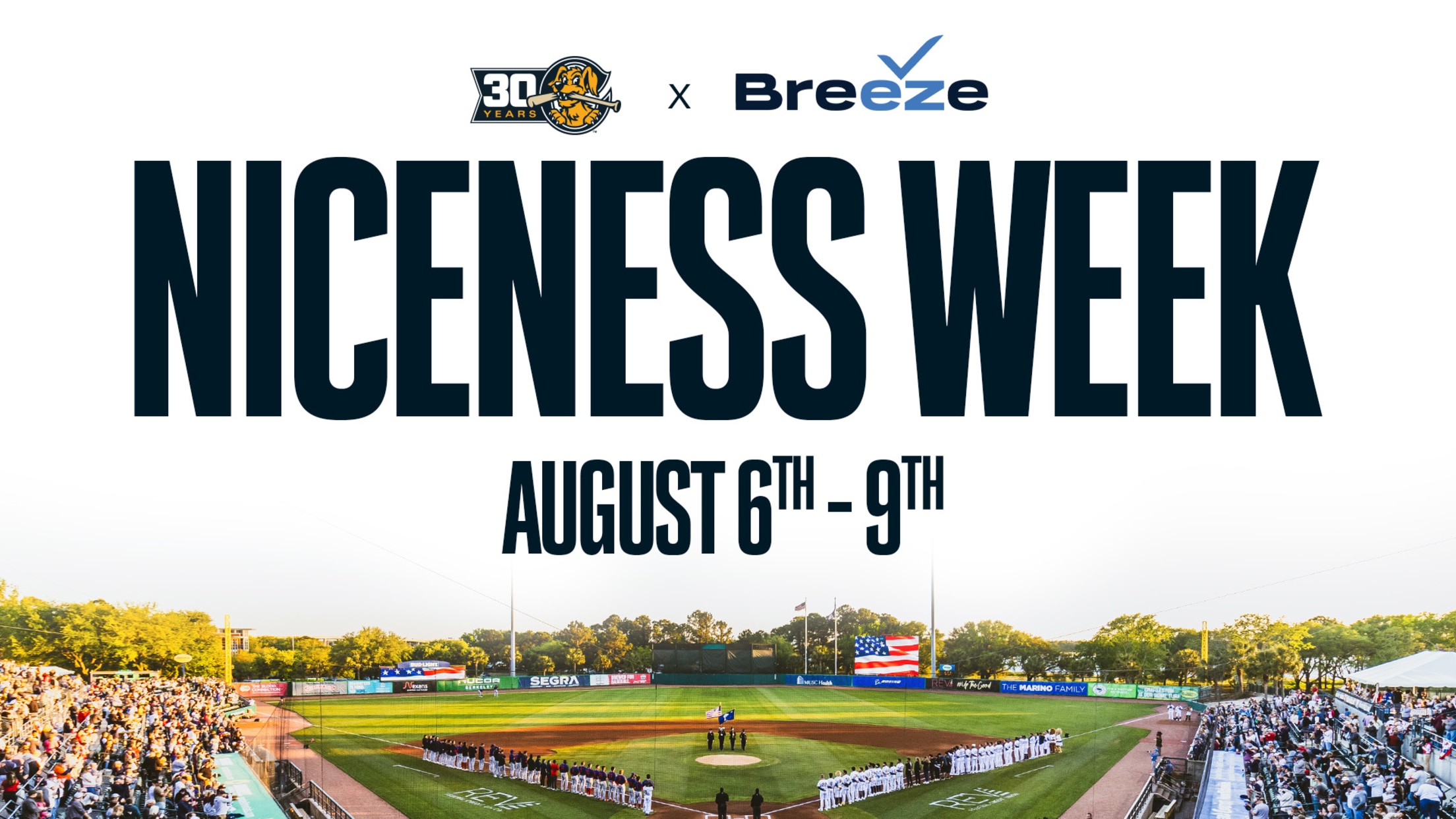 The Charleston RiverDogs and Breeze Airways have announced plans for their third annual Random Acts of Niceness Week. From August 6-9, RiverDogs players and staff, as well as Breeze Airways team members, will be out in the community volunteering at various locations and working to spread niceness around the Holy