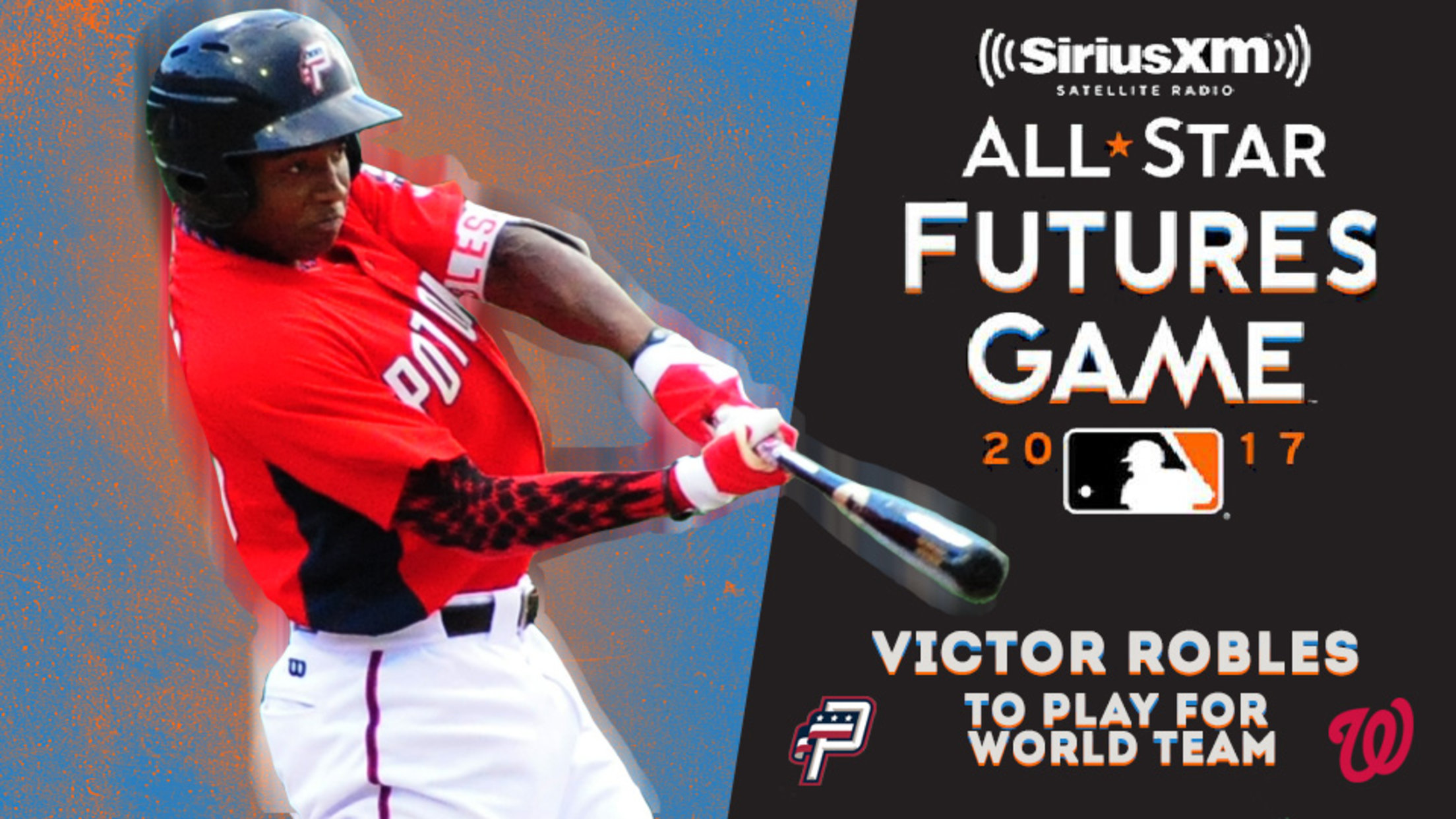 Woodbridge, VA---The Potomac Nationals are proud to announce that CF Victor Robles has been named to the 2017 SiriusXM All-Star Futures Game, where he will represent the World Team in the battle with Team USA. The game is set for Sunday, July 9th, at 4:00pm and will be broadcast on MLB