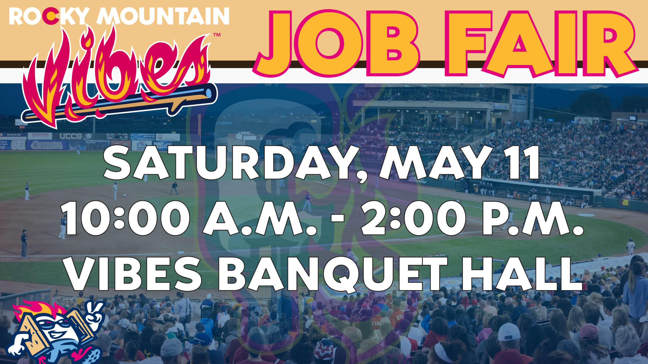 The Rocky Mountain Vibes will be holding a job fair where interested candidates will be able to interview for part-time, summer positions in a variety of areas. The job fair is scheduled for Saturday, May 11 and will be held from 10:00 a.m. until 2:00 p.m. in the Banquet Hall at the Vibes Stadium.