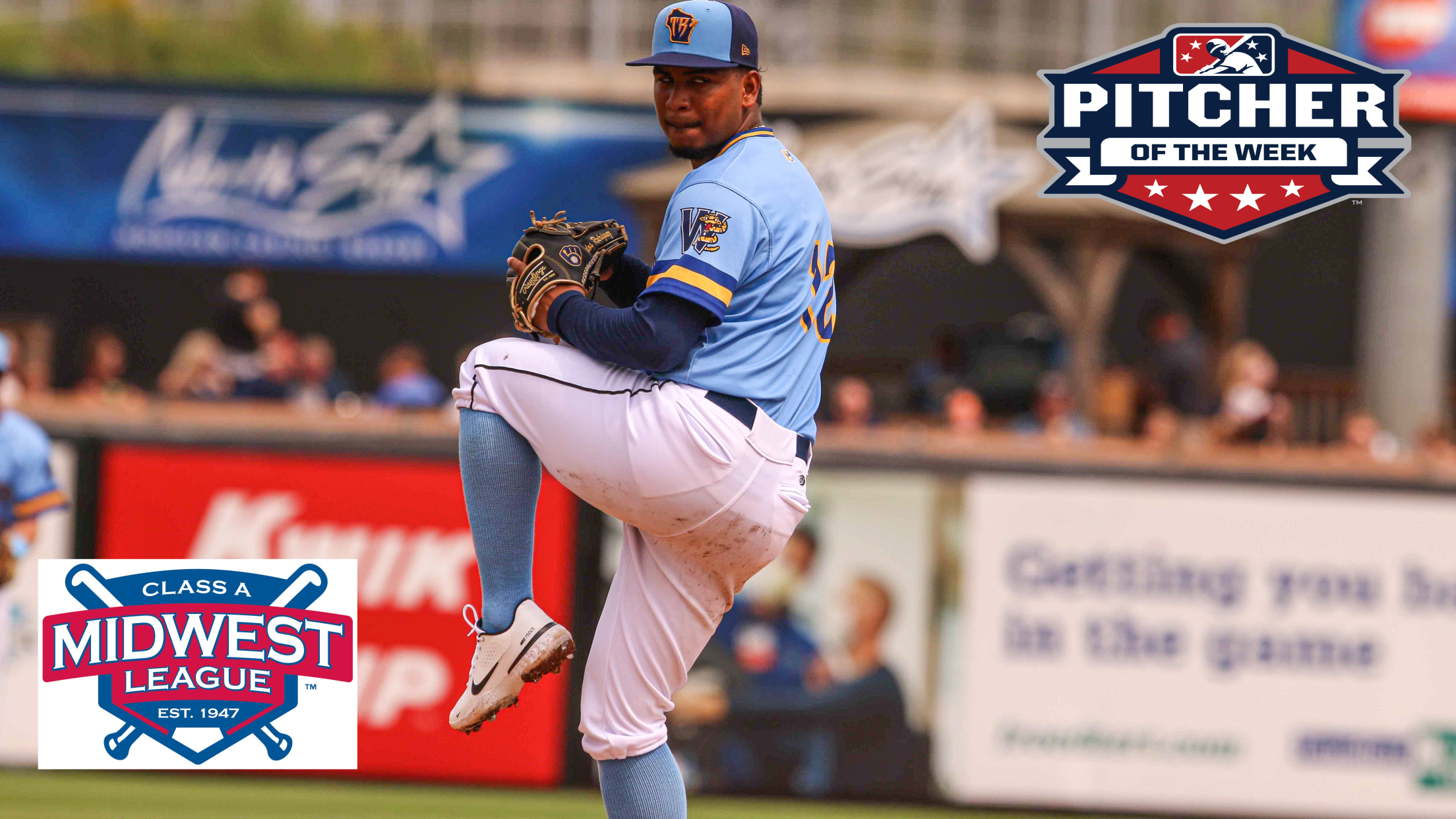 GRAND CHUTE, WI – Carlos Rodríguez was perfect in his start for the Wisconsin Timber Rattlers on September 3 at Peoria and Minor League Baseball rewarded the Milwaukee Brewers pitching prospect with the Midwest League Pitcher of the Week Award. Rodríguez follows up on Stiven Cruz winning the MWL’s Pitcher of the Week Award last week.