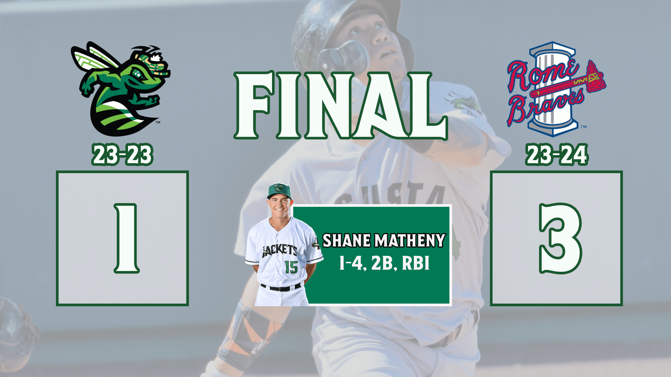 North Augusta, SC: The GreenJackets (23-23) offense was unable to produce enough runs as they left 10 men-on-base, and they fell in the 3rd game of the series to the Rome Braves (23-24) by a final of 3-1. The Jackets will return tomorrow and try to earn a series split