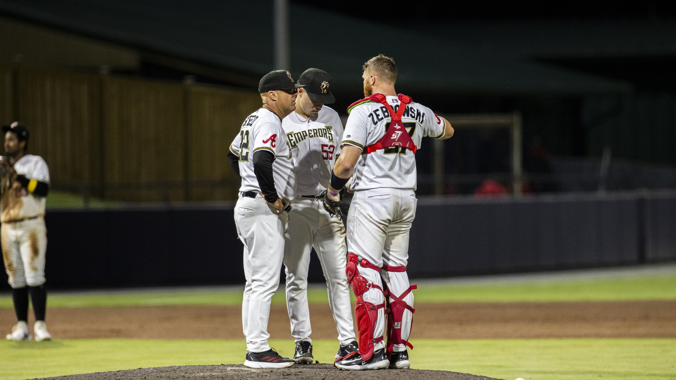 Ethan Workinger’s tenth homerun of the summer came in two-run fashion in the fourth, putting the Emps’ on the board and tying the ballgame at two. In the sixth, Kilpatrick’s 16th double of the season led off the inning and Workinger’s sacrifice fly brought him home to give Rome its first lead of the night. Greenville’s unearned run in the seventh tied the ballgame again before Rome snatched it right back in the home half of the eighth on yet another Workinger RBI base hit to score Kilpatrick.