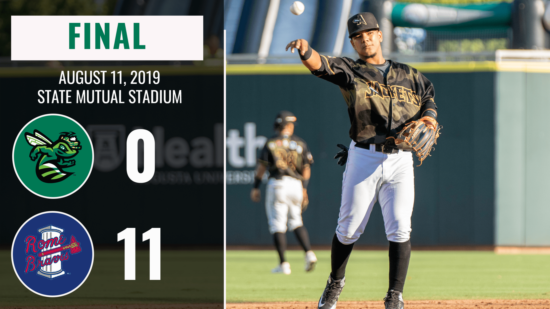 ROME, GEORGIA: The Augusta GreenJackets (63-54, 27-22) dropped the series with the Rome Braves (55-63, 25-24) on Sunday as they fell by a final of 11-0. The Jackets have not scored a run in their last 19-innings and they were shutout in all three of their losses in the series.