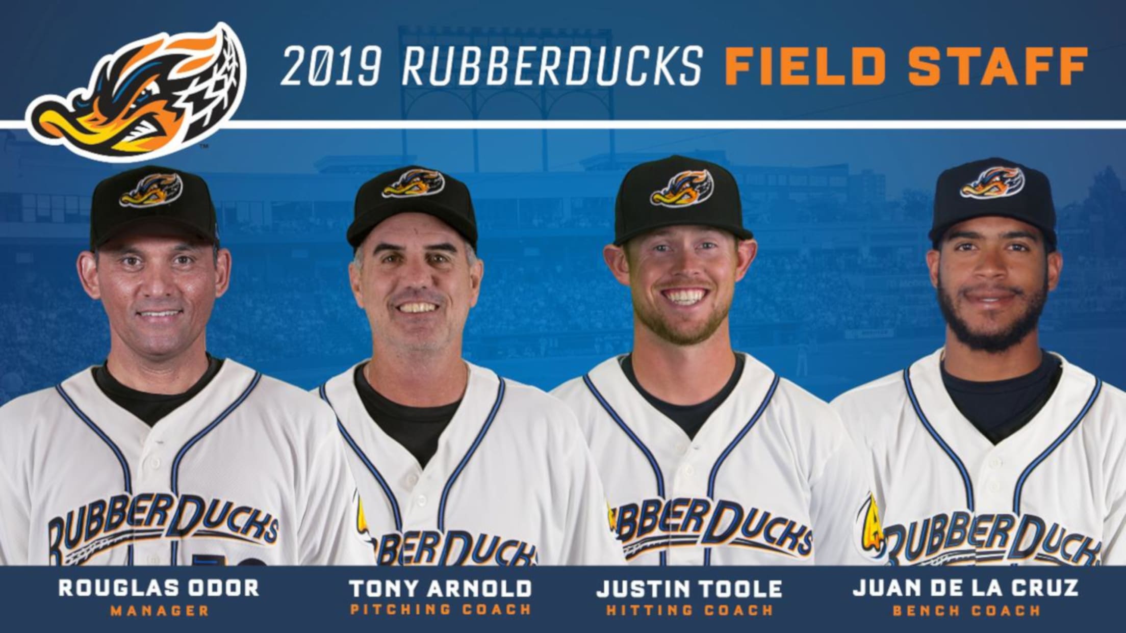 New manager ROUGLAS ODOR, who was the RubberDucks hitting coach in 2014, will be joined by pitching coach TONY ARNOLD and hitting coach JUSTIN TOOLE, both of whom worked in the same capacity under Odor in 2018 at High Class A Lynchburg. Also coming from Lynchburg is athletic trainer BOBBY RUIZ, who spent four seasons with the Hillcats (2015-18). Joining them will be bench coach JUAN DE LA CRUZ, who spent last season the hitting coach with the rookie-level Arizona League Indians and strength and conditioning coach PAUL SYNENKYJ is the lone returning field staff member from 2018.