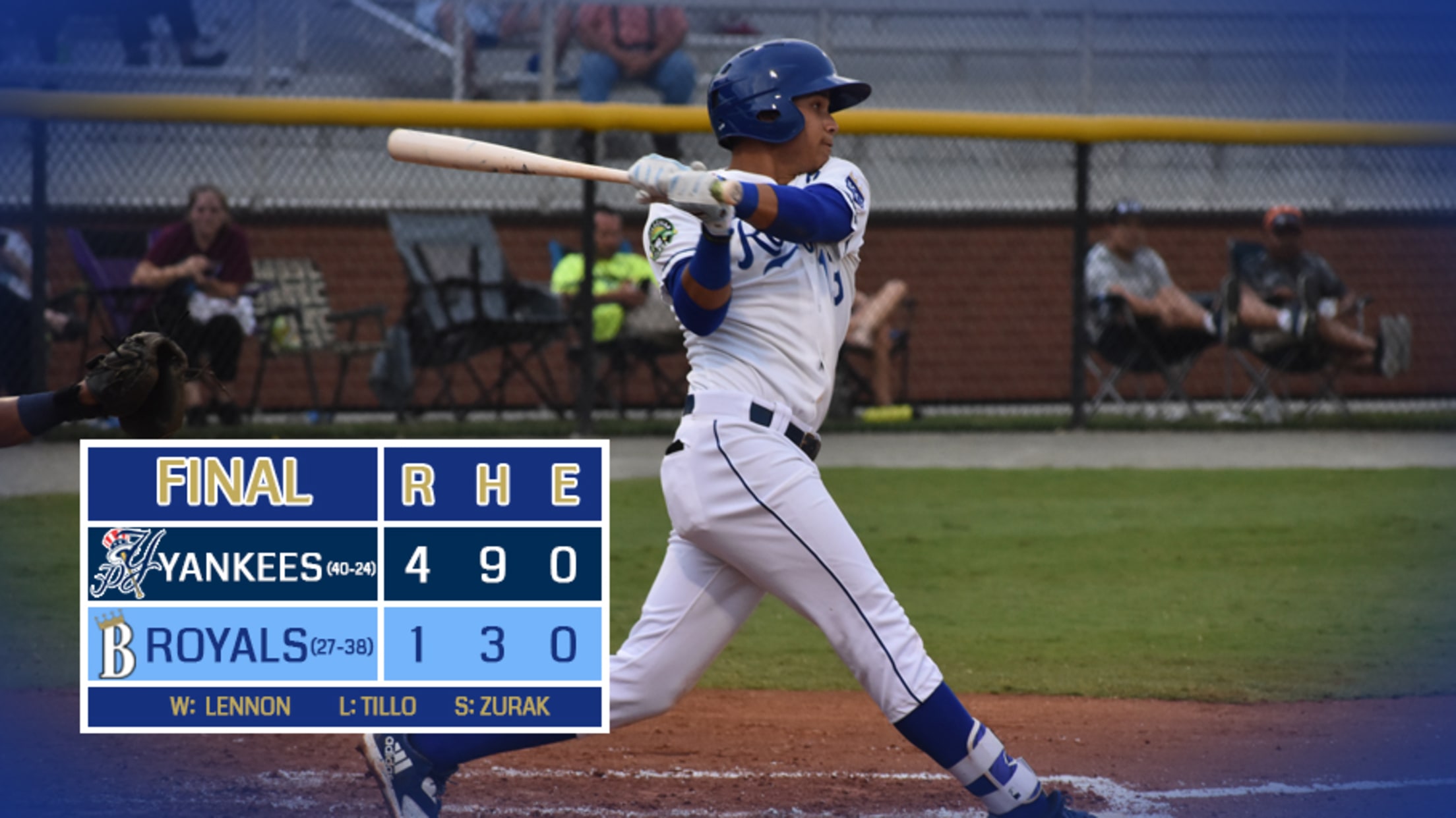 BURLINGTON, N.C.- The Burlington Royals were defeated by the Pulaski Yankees 4-1 in the 2017 home finale at Burlington Athletic Stadium on Monday evening.