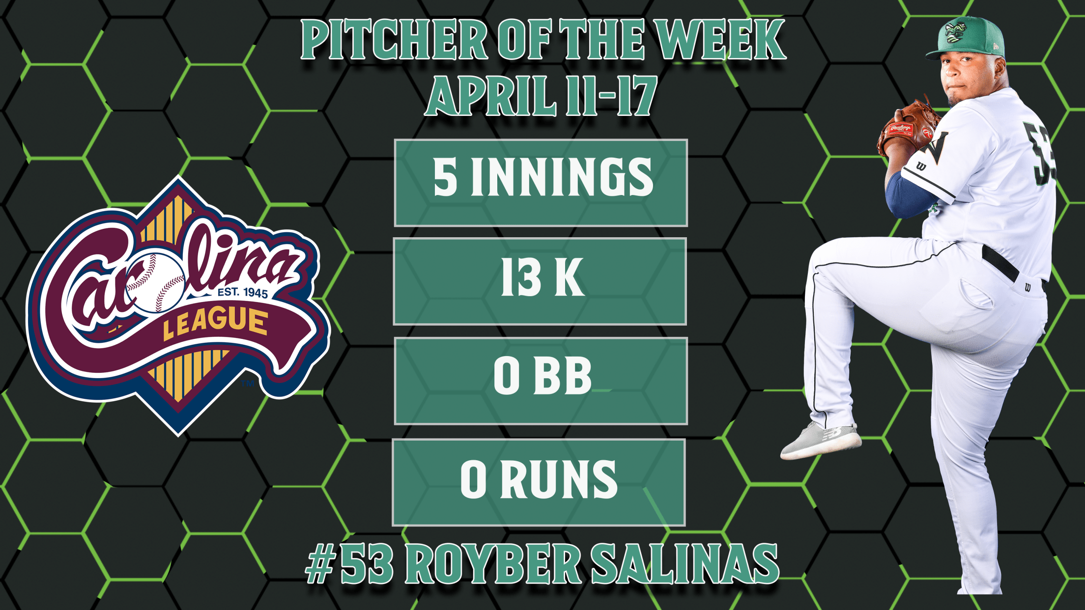 *Royber Salinas Named Carolina League Pitcher of the Week *