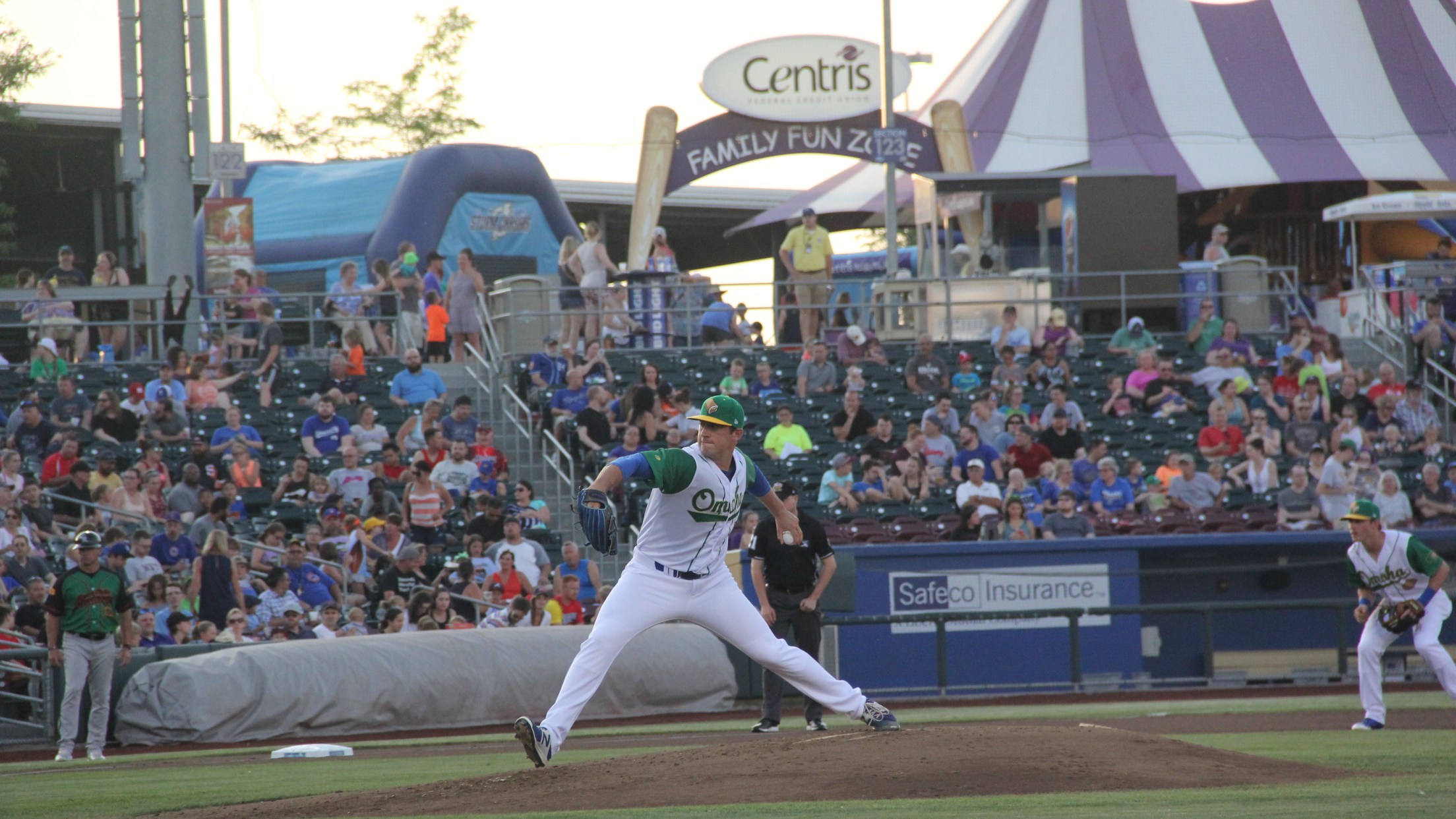 Omaha southpaw Jake Kalish fired five nearly flawless innings, supported by four shutout frames combined between Wily Peralta and Kevin Lenik , while shortstop Adalberto Mondesi crushed a solo home run in a 2-0 victory over Albuquerque in front of 6,863 fans on Saturday evening at Werner Park. Saturday's contest