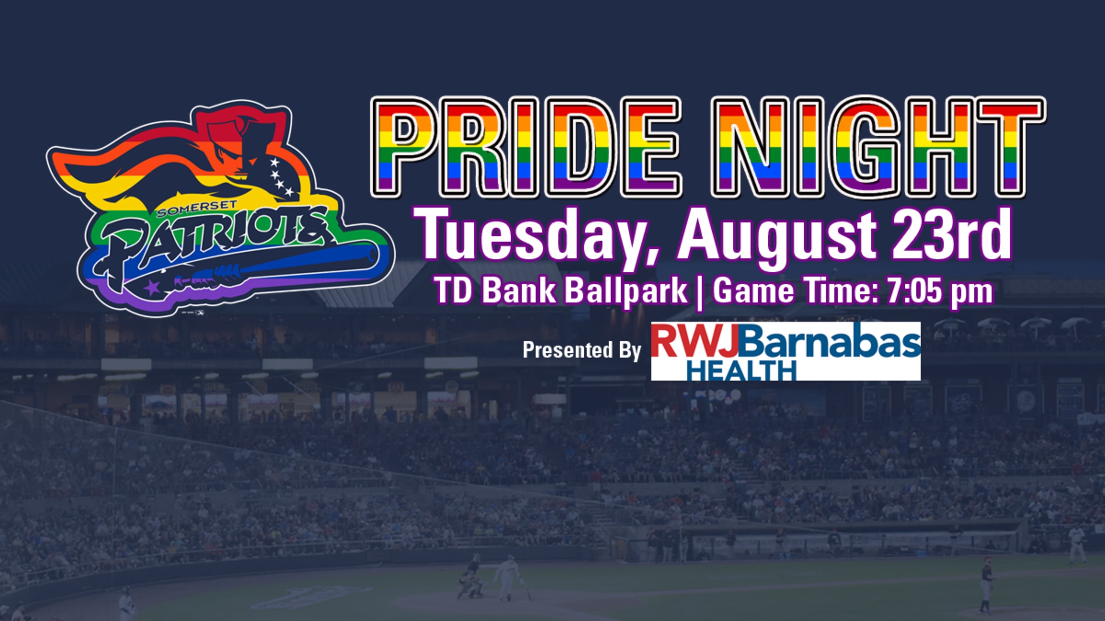 Bridgewater, New Jersey – RWJBarnabas Health, the official healthcare provider of the Somerset Patriots, will host Pride Night at TD Bank Ballpark on Tuesday, August 23 for the team’s 7:05 pm game versus the New Hampshire Fisher Cats.