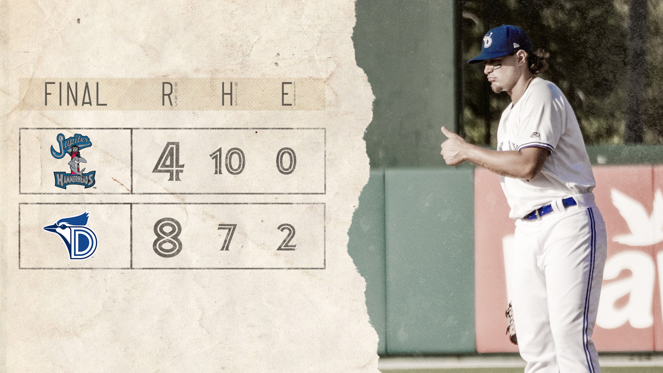 Game 1:Coming into the series Dunedin had previously swept the Hammerheads at Jupiter in late April, so Jupiter was looking to get back at the Blue Jays. However, in game one Dunedin jumped on board in the 3rd inning with a Cal Stevenson double to the warning track in right-center