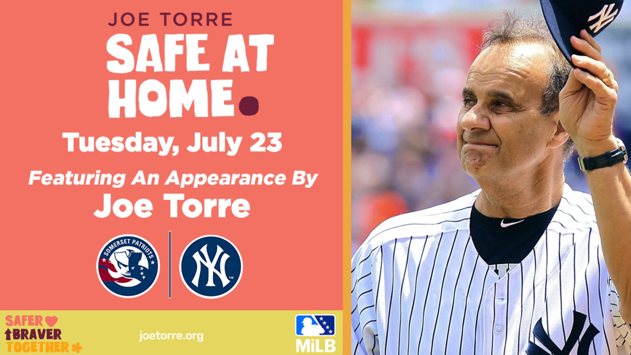 Bridgewater, New Jersey - The Somerset Patriots, the New York Yankees Double-A affiliate, will welcome MLB icon and Hall of Famer Joe Torre to TD Bank Ballpark on Tuesday, July 23 as part of a partnership with the Safe At Home Foundation. The Patriots take on the Portland Sea Dogs