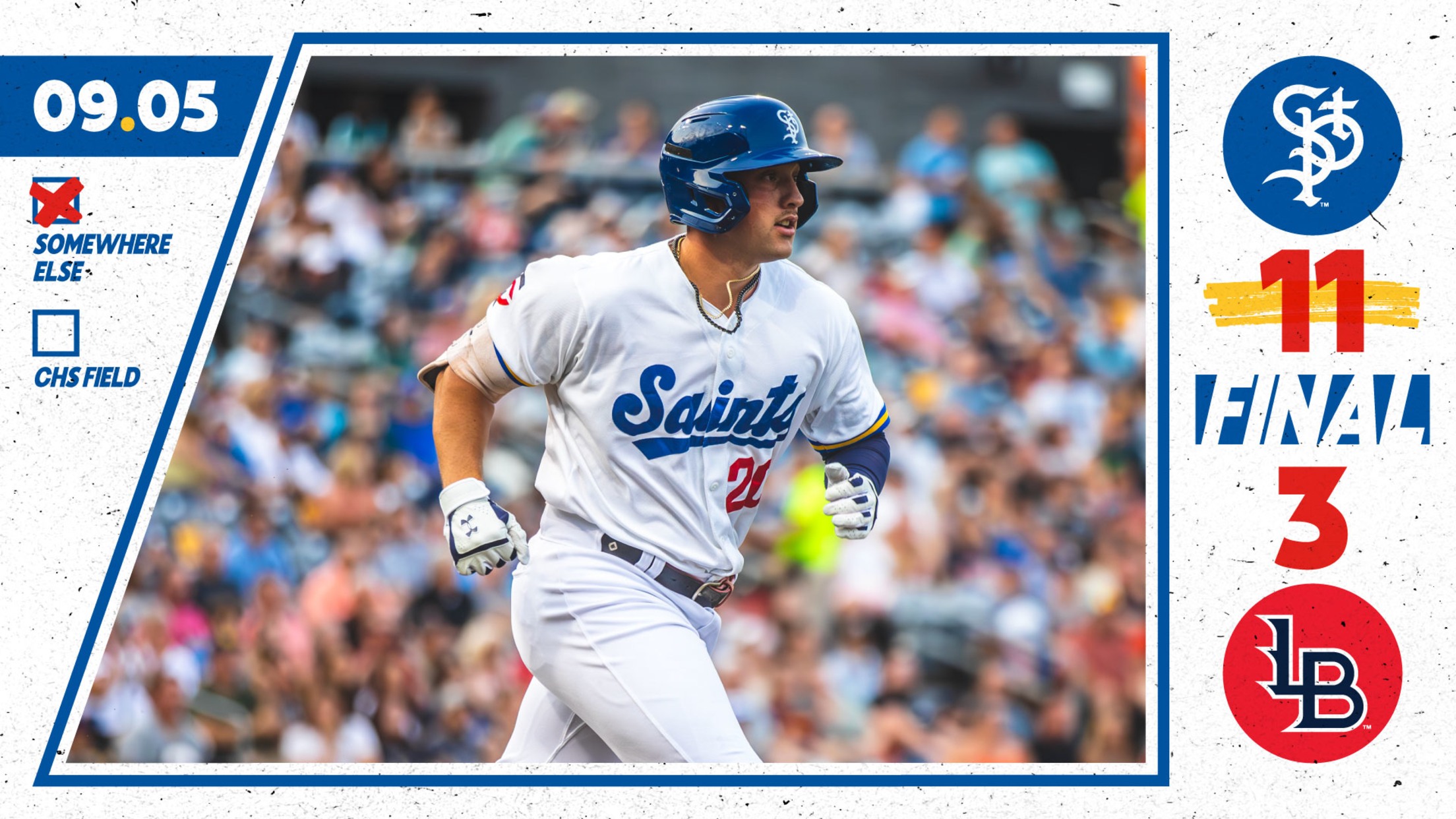 \LOUISVILLE, KY (September 5, 2023) - Brooks Lee did something on Tuesday night at Louisville Slugger Field he hadn’t accomplished in his short professional career, hit a grand slam. It gave the St. Paul Saints 12 on the season, the most among the 120 Minor League teams and 30 Major