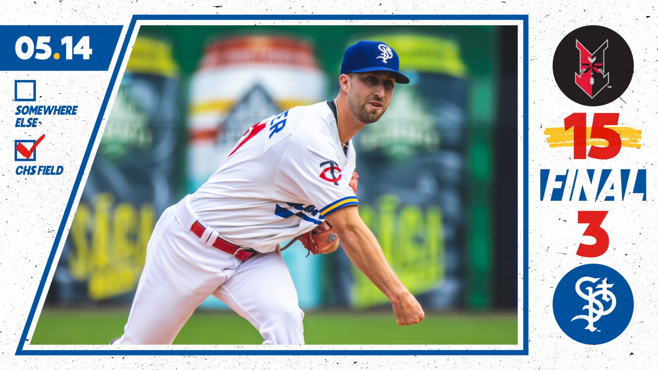 _ST. PAUL, MN _*(May 14, 2023) - *The St. Paul Saints have now played five two-week homestands in their short time as a Triple-A affiliate. They had an opportunity to finish with a winning record for the first time in five tries. Unfortunately, the Indianapolis Indians had other ideas as the Saints lost 15-3 on Sunday afternoon at CHS Field in front of 4,542. The loss gave the Saints a 6-6 record in their 12-game homestand and they are now 21-16 on the season.