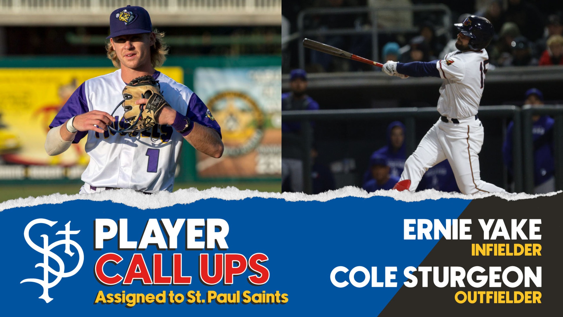 ST. PAUL, MN (May 5, 2022) - For the first time this season the St. Paul Saints are getting reinforcements from the crop of talent throughout the organization. Outfielder Cole Sturgeon, in his first season with the Minnesota Twins organization, has been assigned to the Saints from Double-A Wichita, and infielder Ernie Yake, in his second professional season, joins the team from Single-A Fort Myers.