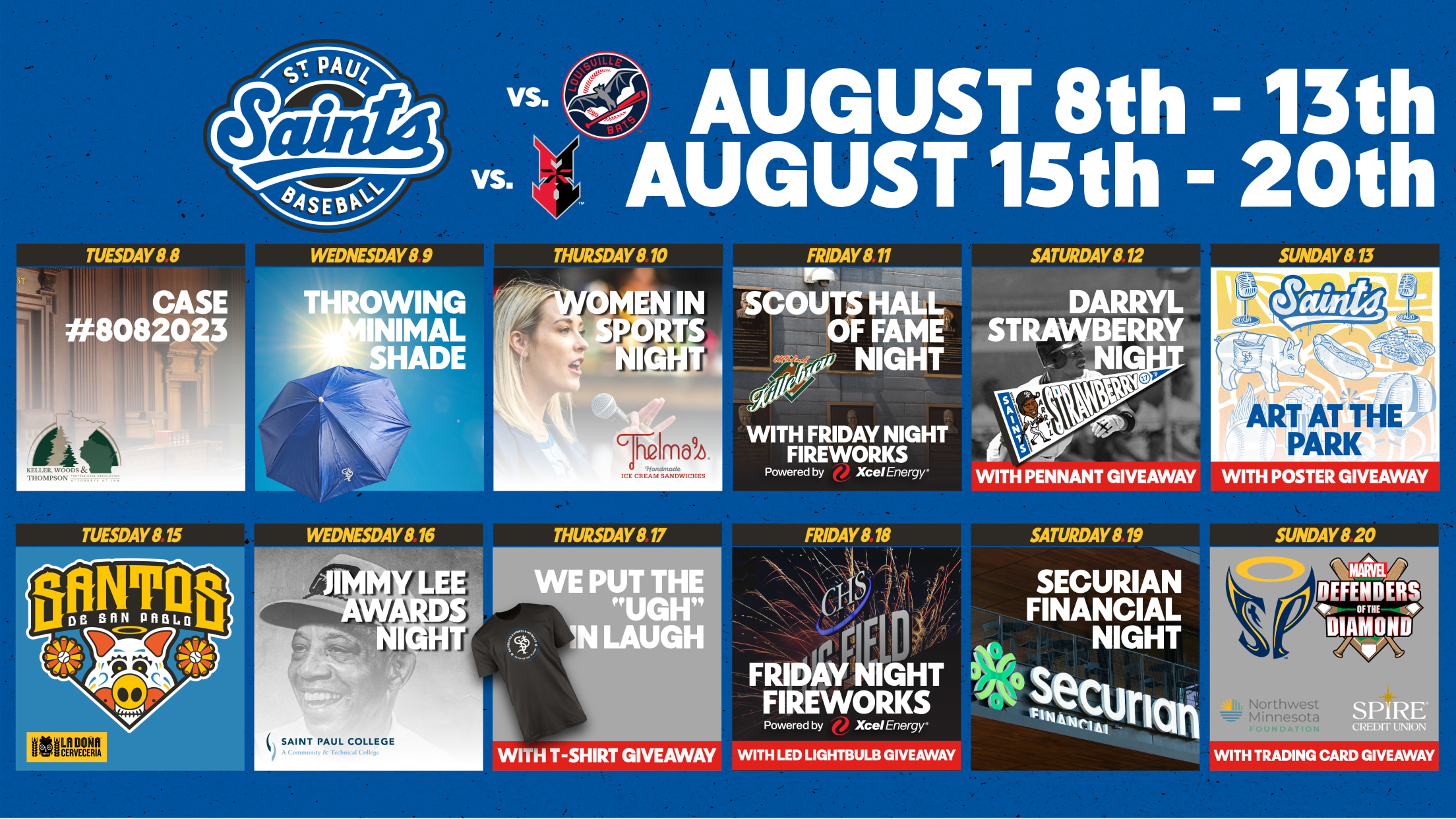 Tuesday, August 8 vs. Louisville Bats (Cincinnati Reds), 7:07 p.m. – Case #8082023, St. Paul vs. Louisville presented by Keller, Woods & Thompson