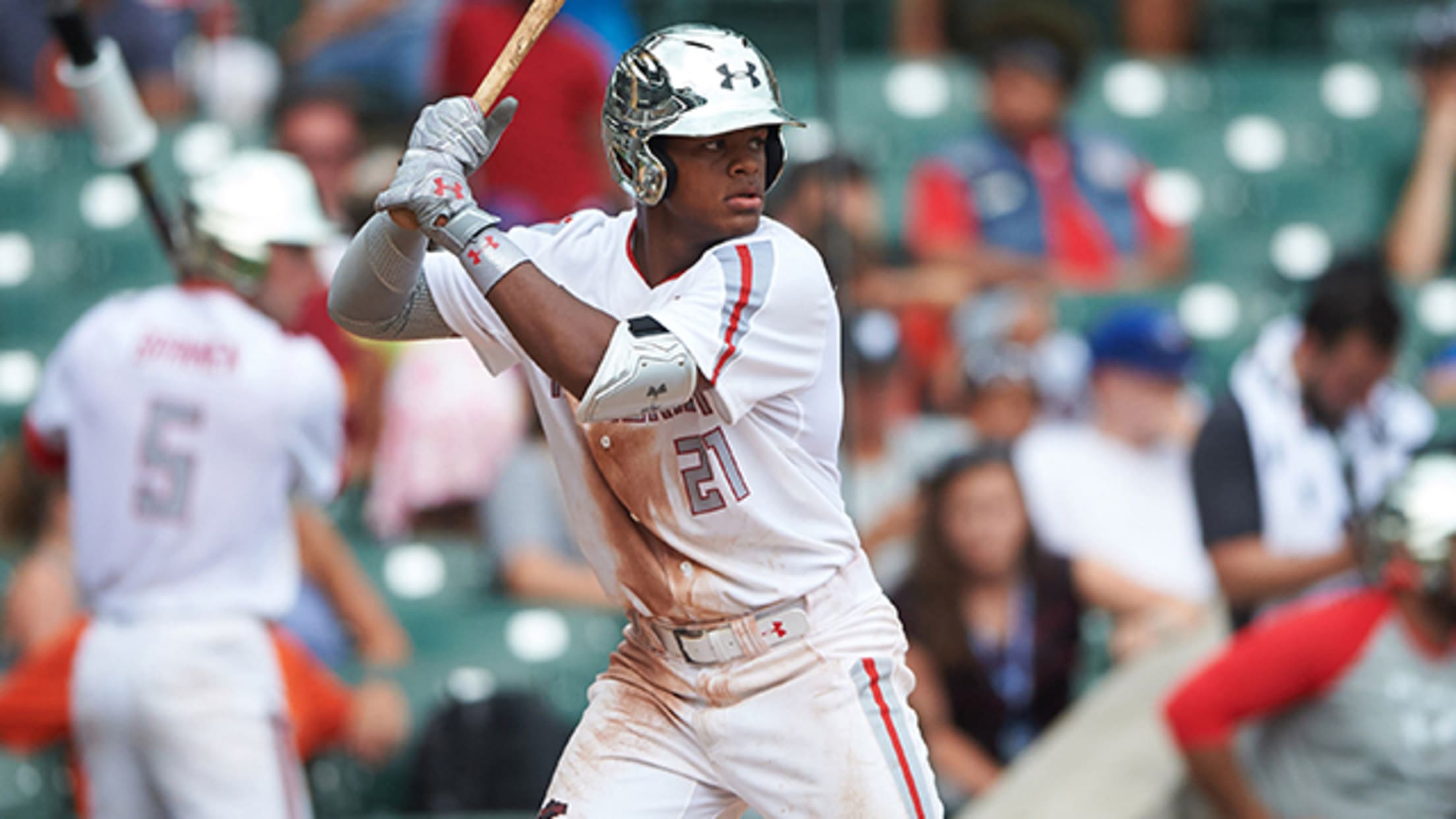 San Francisco's first-round pick went 4-for-5 with a homer, two doubles, an RBI and four runs scored to lead the Rookie-level Arizona League Giants to a 9-8 win over the Athletics on Saturday.
