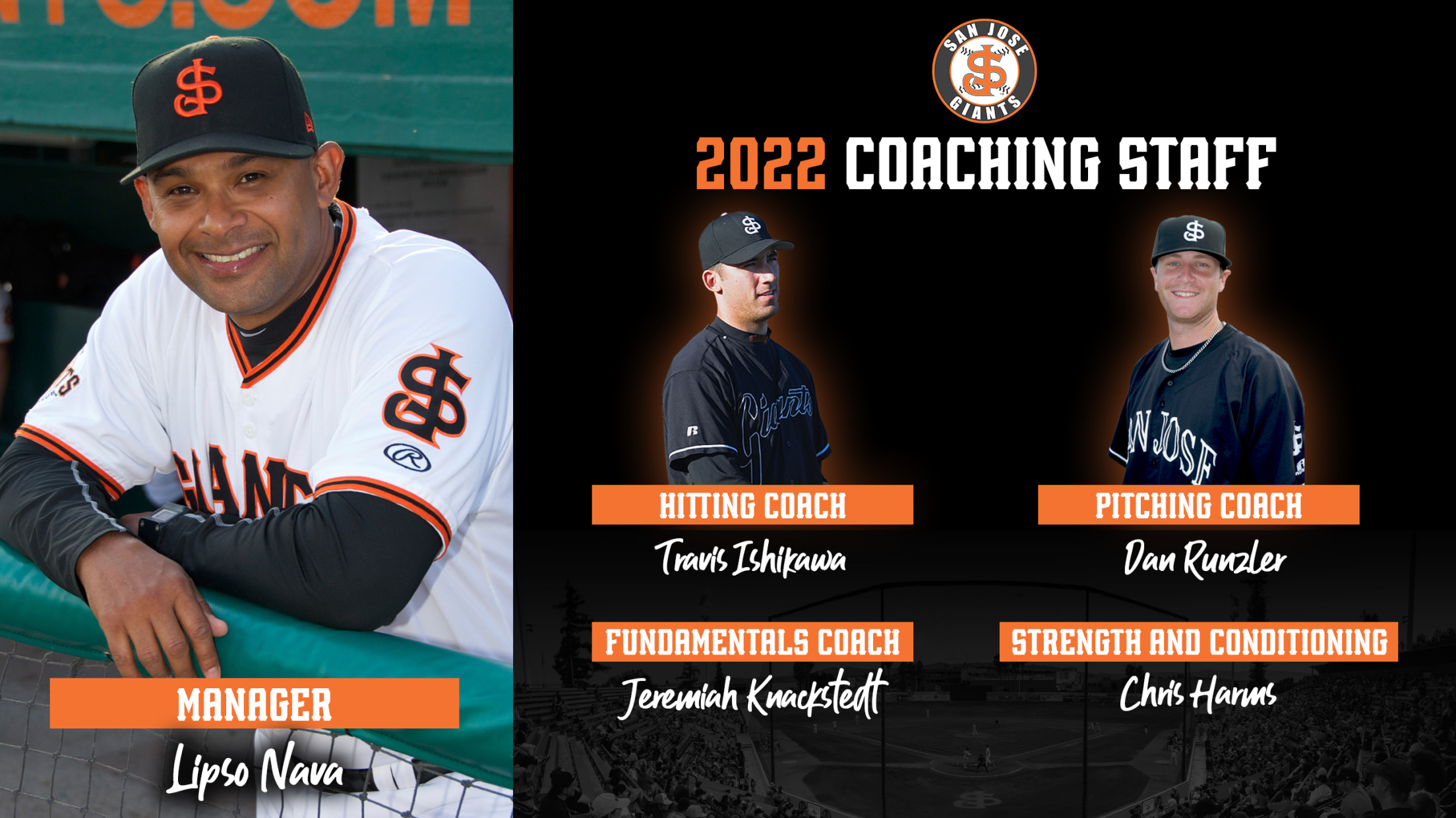 Rounding out the San Jose field staff is fundamentals coach Jeremiah Knackstedt (previously Arizona Giants fundamentals coach) and strength and conditioning coach Chris Harms.