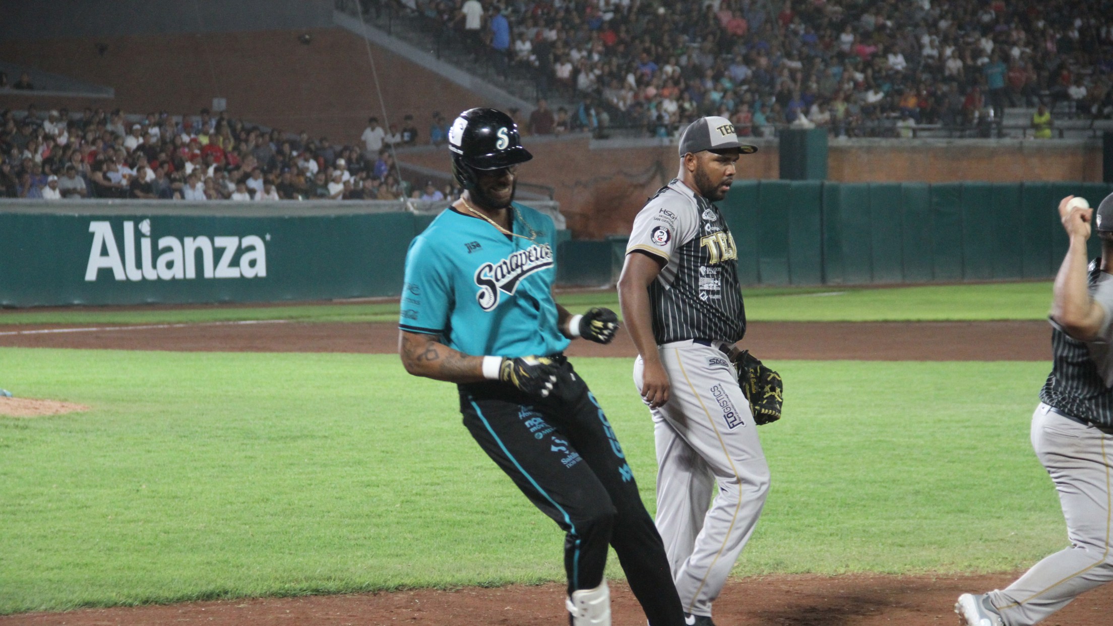 Sin embargo, el relevo corto de Tecolotes, Geoff Broussard cerró la puerta a Saraperos y ya no permitió el regreso, al dominar a Sergio Burruel, aunque recibió hit pro la raya del derecho del emergente Jesús Arredondo, dominó a Rainel Rosario con elevado a segunda y abanicó a Johneshwy Fargas para cerrar el juego y la división de honores para los equipos.