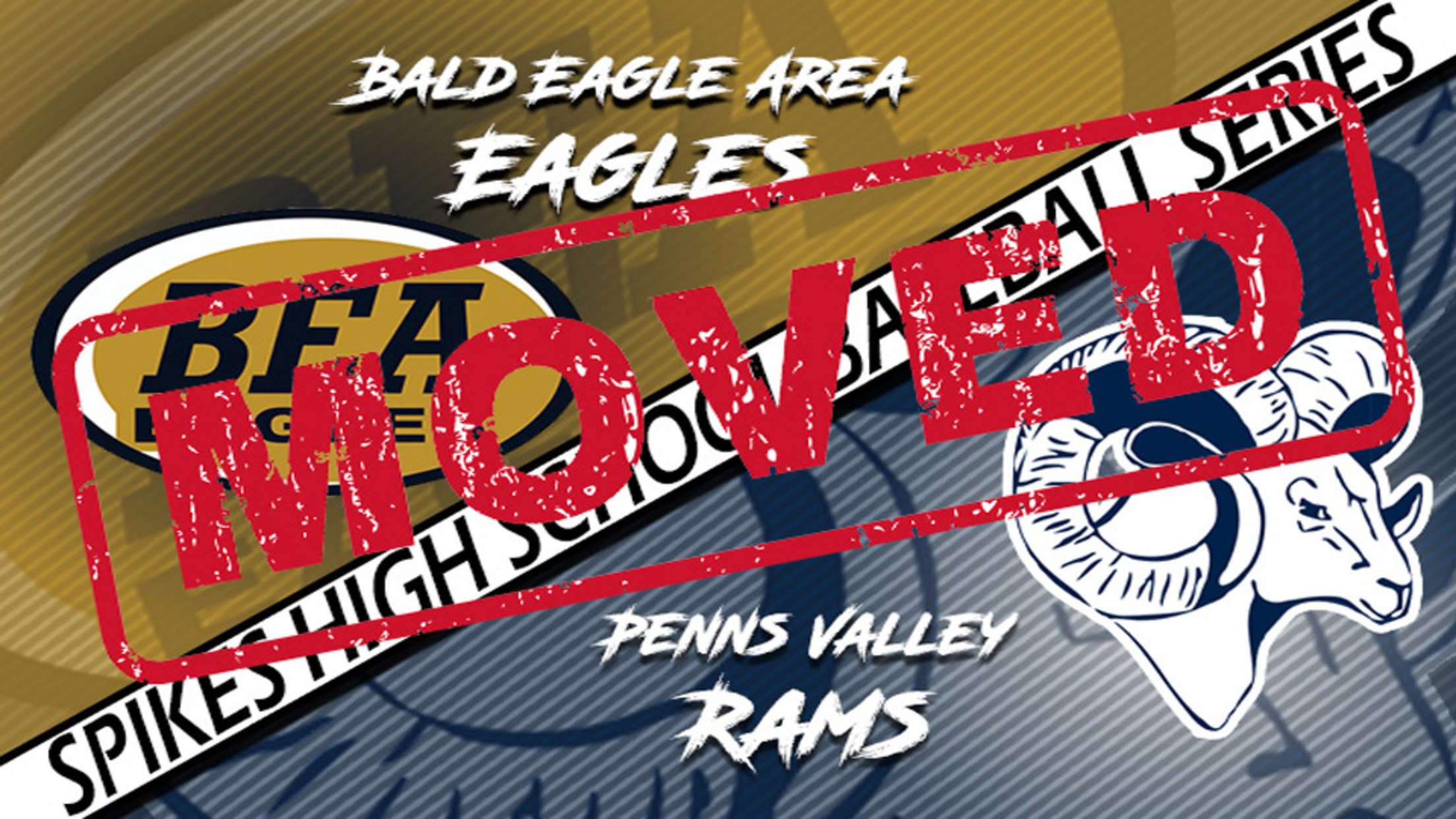 Due to the rescheduling of games in Penn State's series against Ohio State this weekend, Saturday's Bald Eagle Area-Penns Valley high school game will not be played at Medlar Field at Lubrano Park. The Eagles and Rams, who were set to lead off the Spikes High School Baseball Series, will instead meet at Bald Eagle Area for a 3 p.m. game on Saturday.