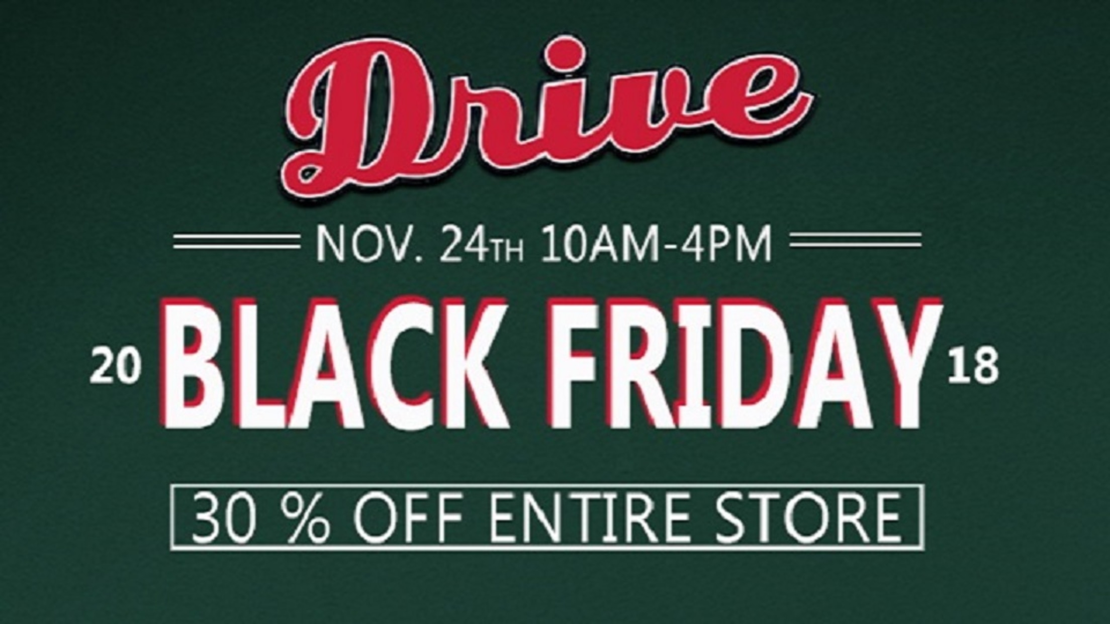 The holiday season is approaching quickly, and you won't want to miss the Drive's annual Black Friday sale. The Team Store on Main Street will be open from 10:00 AM to 4:00 PM on Friday, and you can save 30% off the entire store!