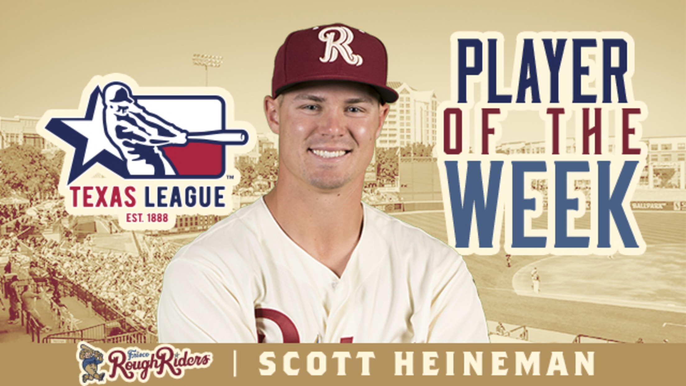 FRISCO, Texas (June 26, 2017) - Outfielder Scott Heineman earned Texas League's Player of the Week for the week of June 19-25, the league announced Monday.Heineman batted .538 (14-26) with three doubles, a home run, and five RBIs, recording hits in all seven games. The first-year Riders outfielder scored eight