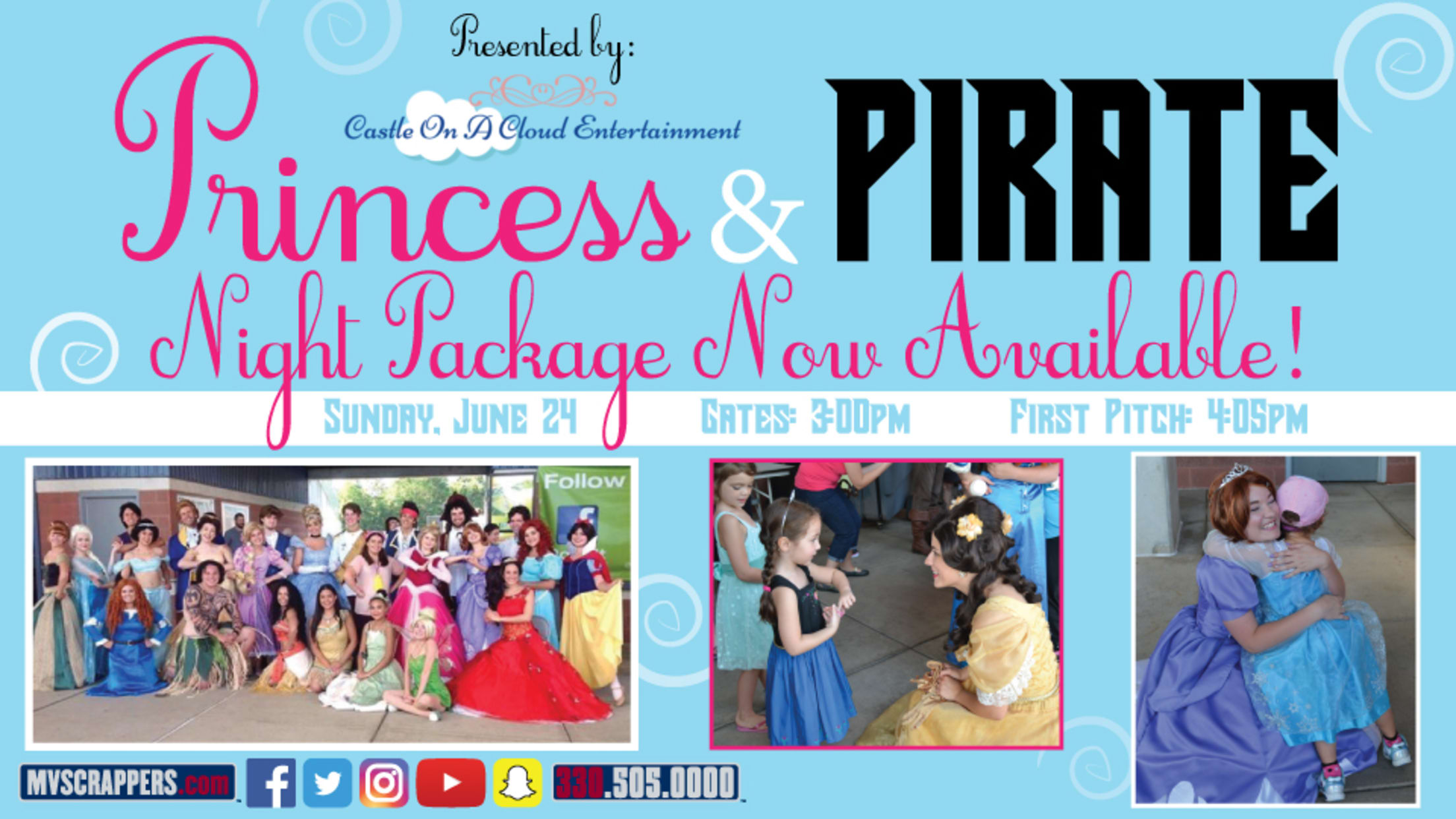 NILES, OH - The Mahoning Valley Scrappers will host Princess and Pirate Night presented by Caslte On A Cloud Entertainment on Sunday, June 24 against the Williamsport Crosscutters. A special princess and pirate package will be available for purchase. The package will include two upper box seat tickets, a tiara
