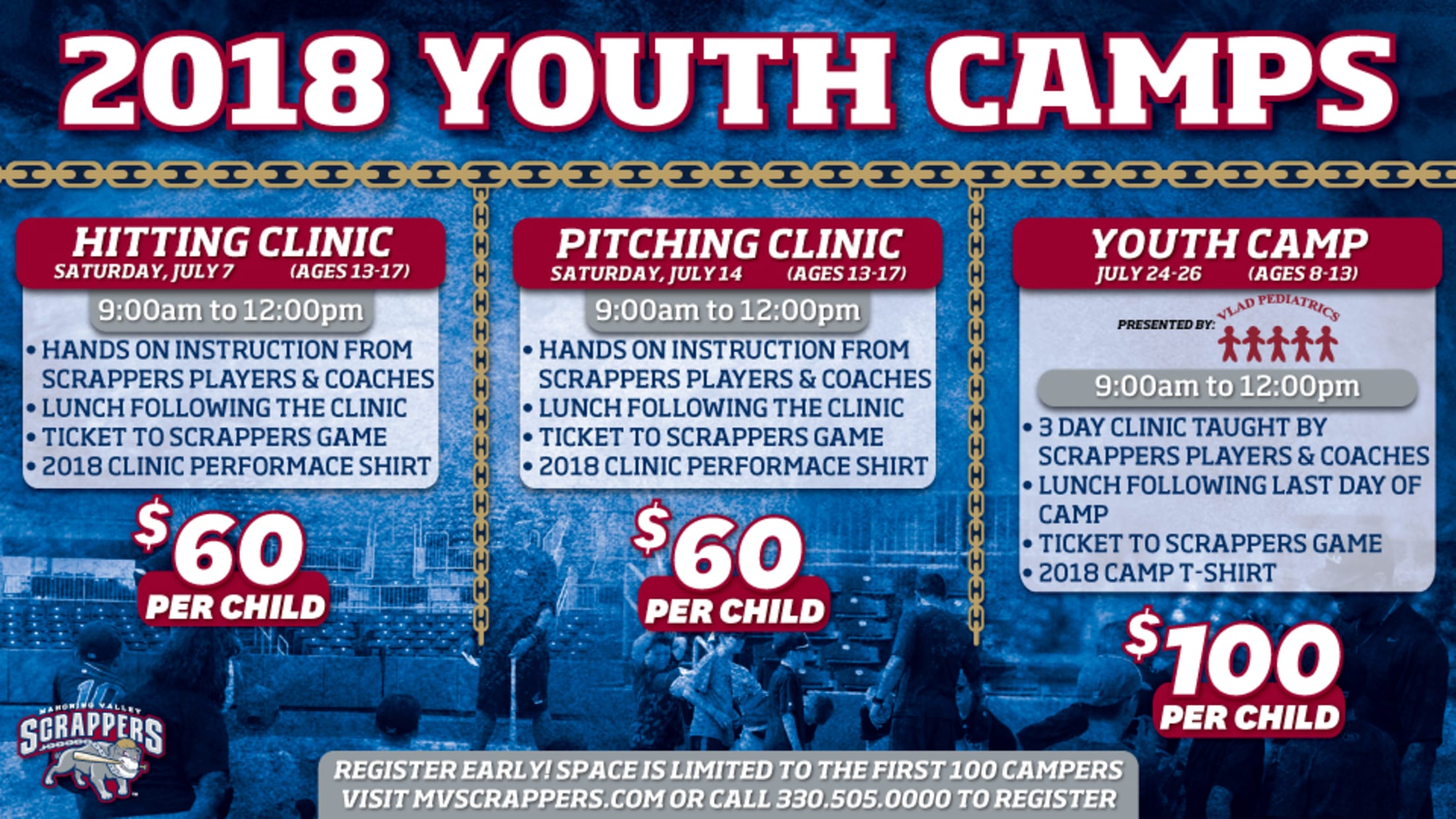 The Mahoning Valley Scrappers are excited to announce that they have partnered with Vlad Pediatircs to host a three-day Youth Baseball Camp July 24-26.