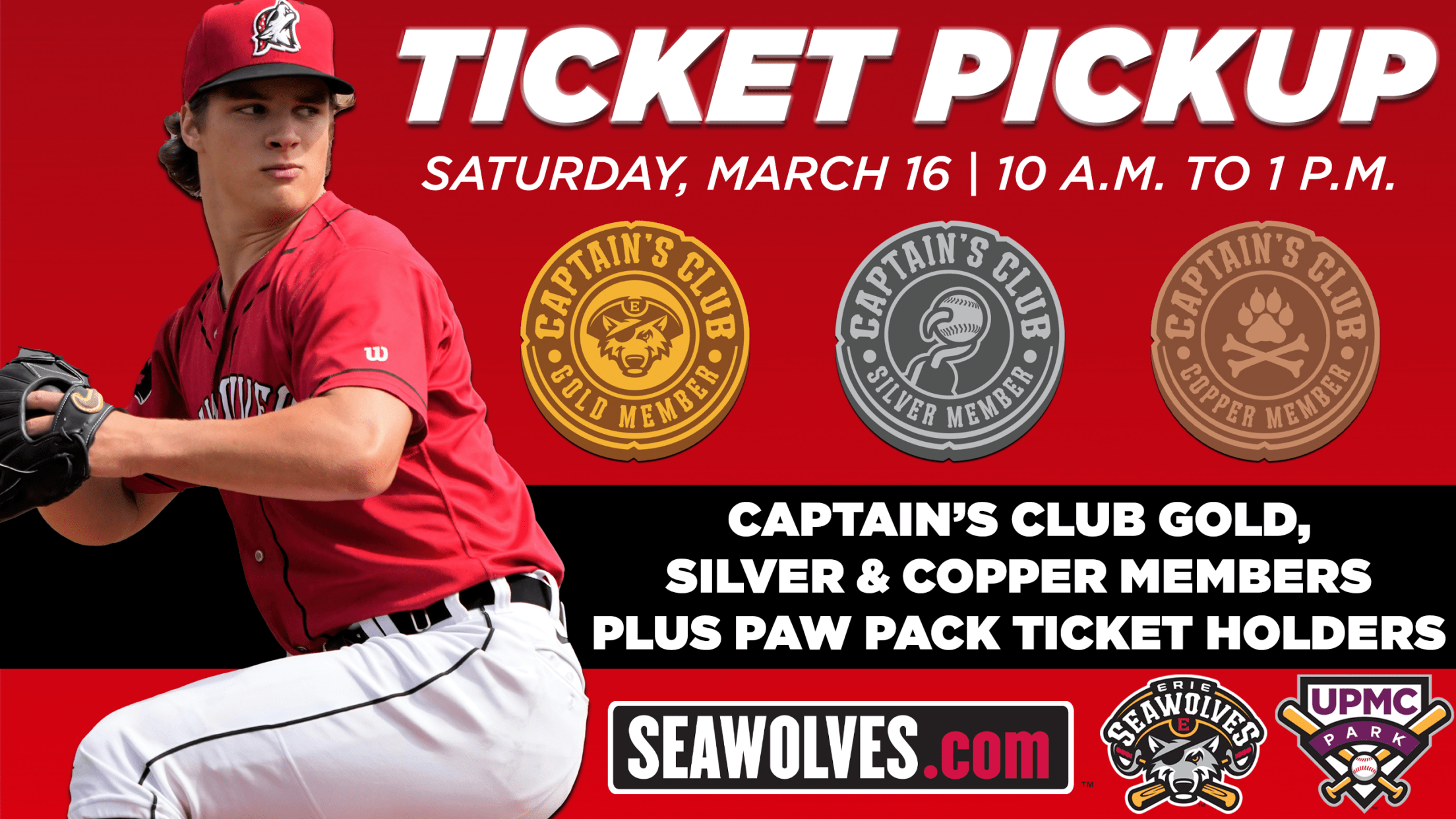 The SeaWolves announce today that ticket pickup for Captain’s Club members and mini-plan holders will be held on Saturday, March 16 from 10 a.m. until 1 p.m. in the UPMC Park Team Store. March 16 is also the first day that fans can purchase single-game tickets in person at the UPMC Park Box Office.